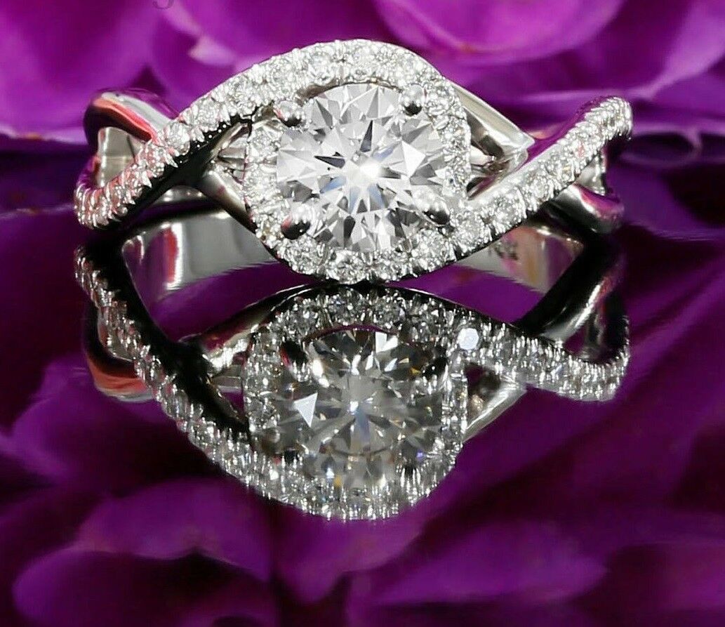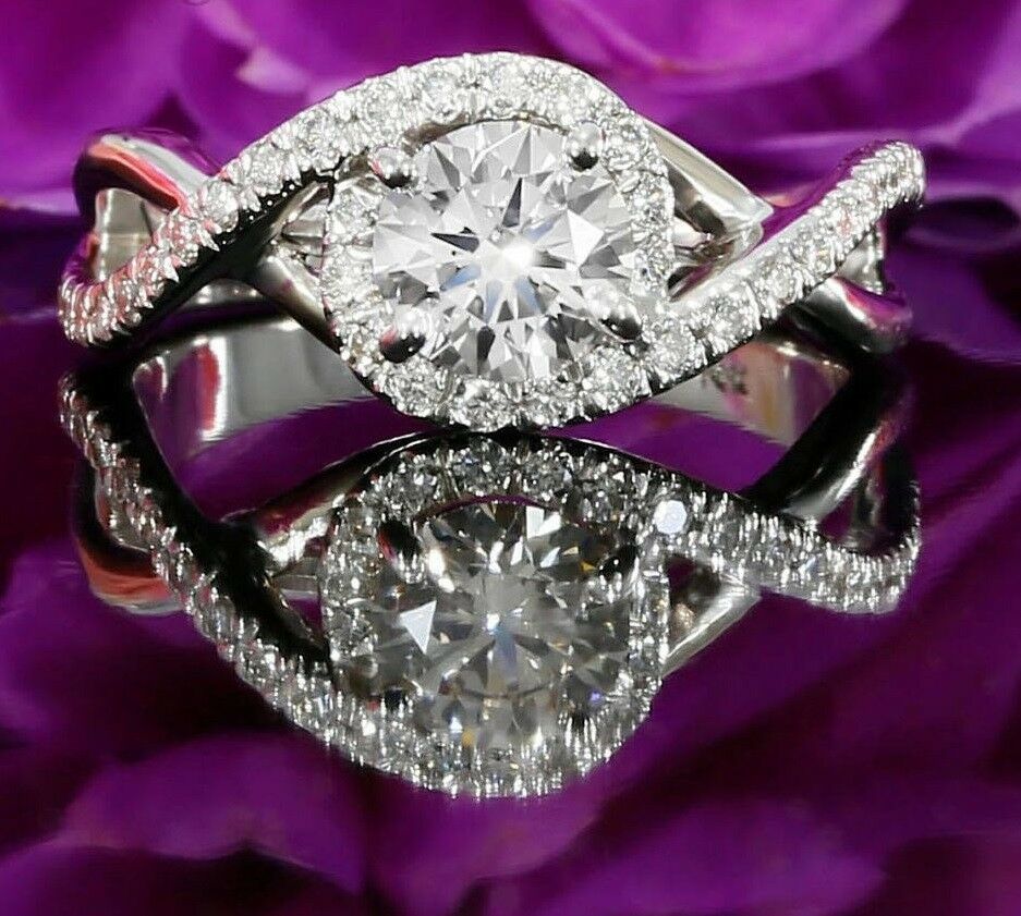2ct Round Cut VVS1 Diamond Infinity Swirl Engagement Ring 14k White Gold Finish