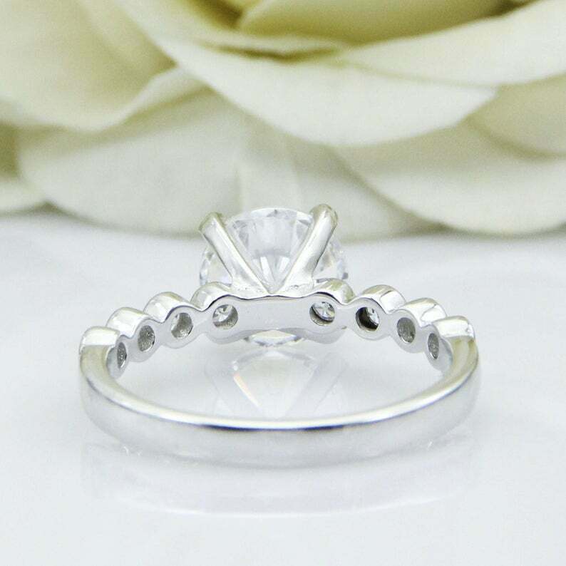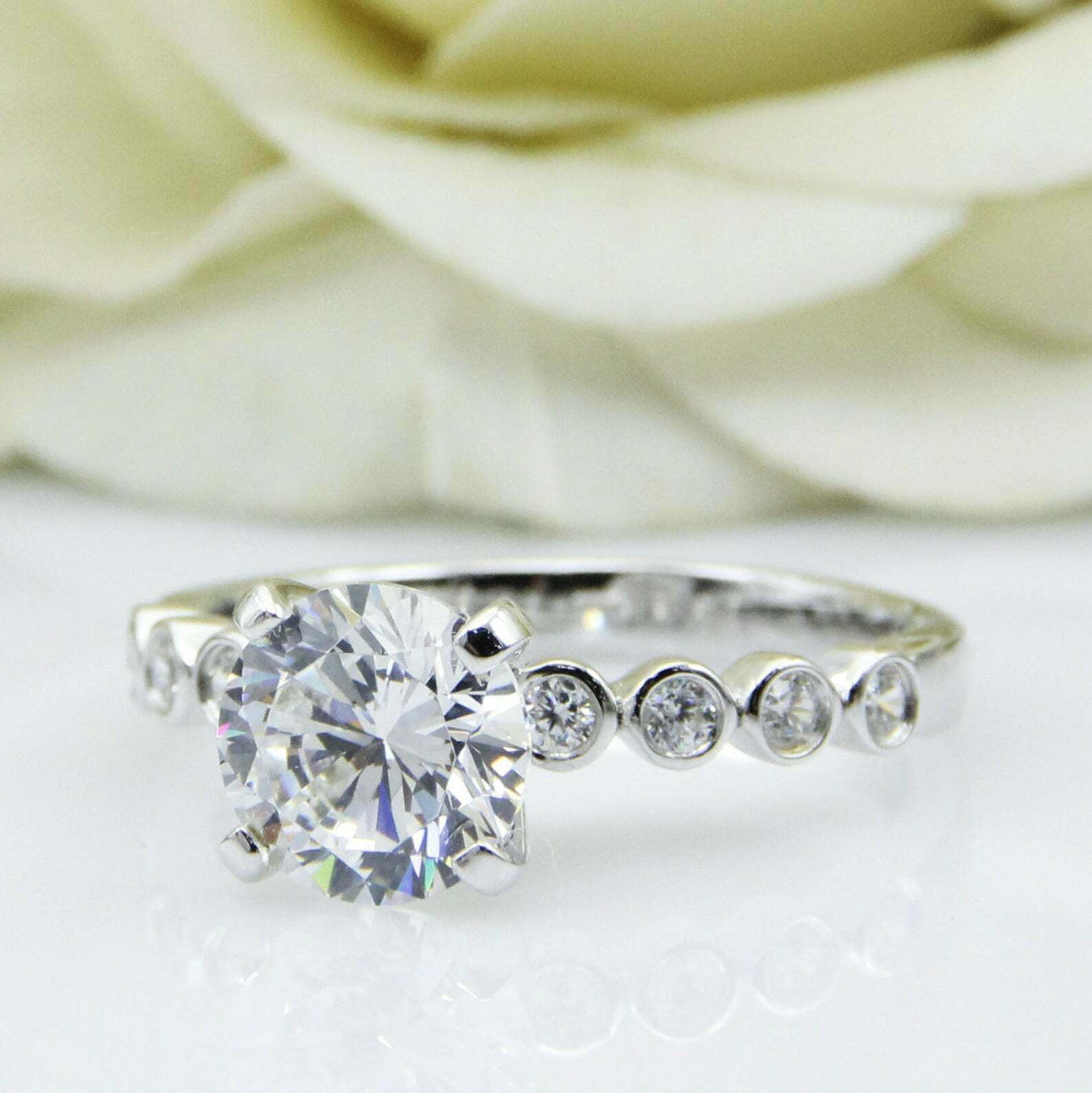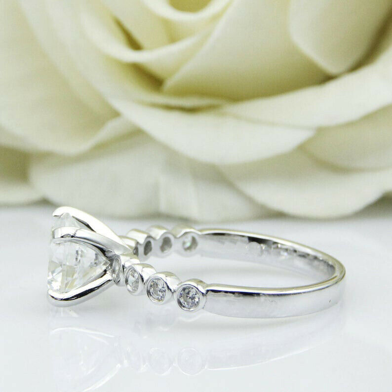 2ct Round Cut VVS1 Diamond Solitaire Bezel Set Accent Ring 14k White Gold Finish