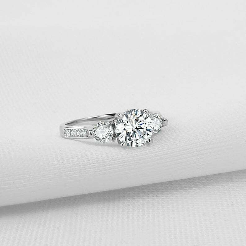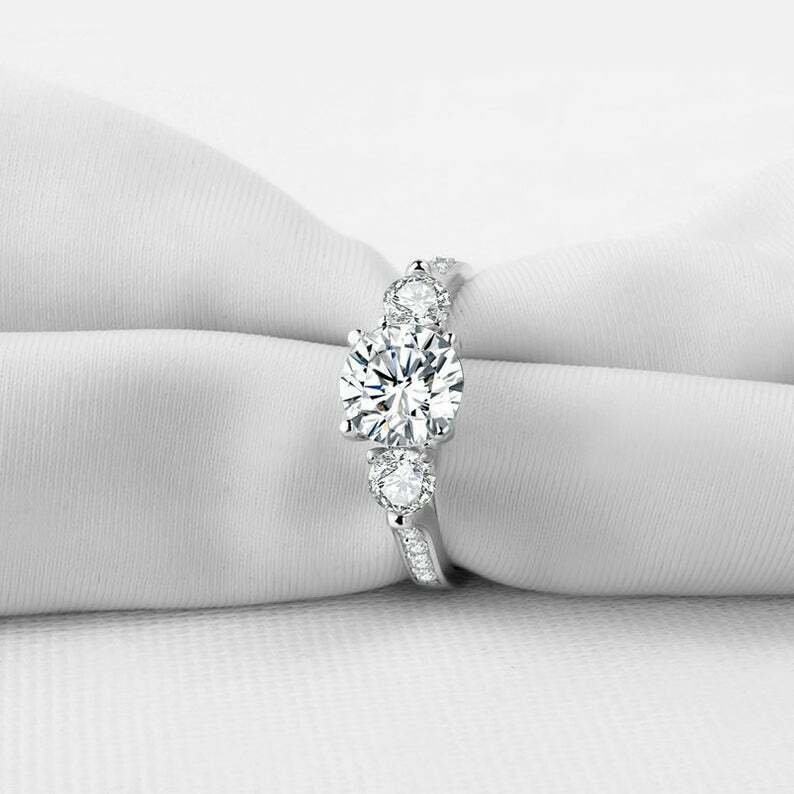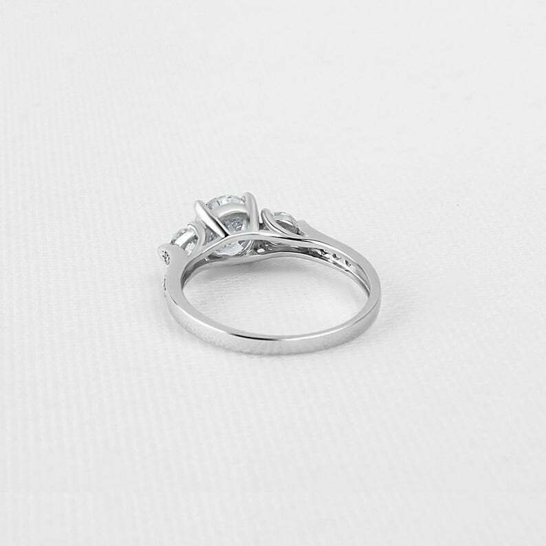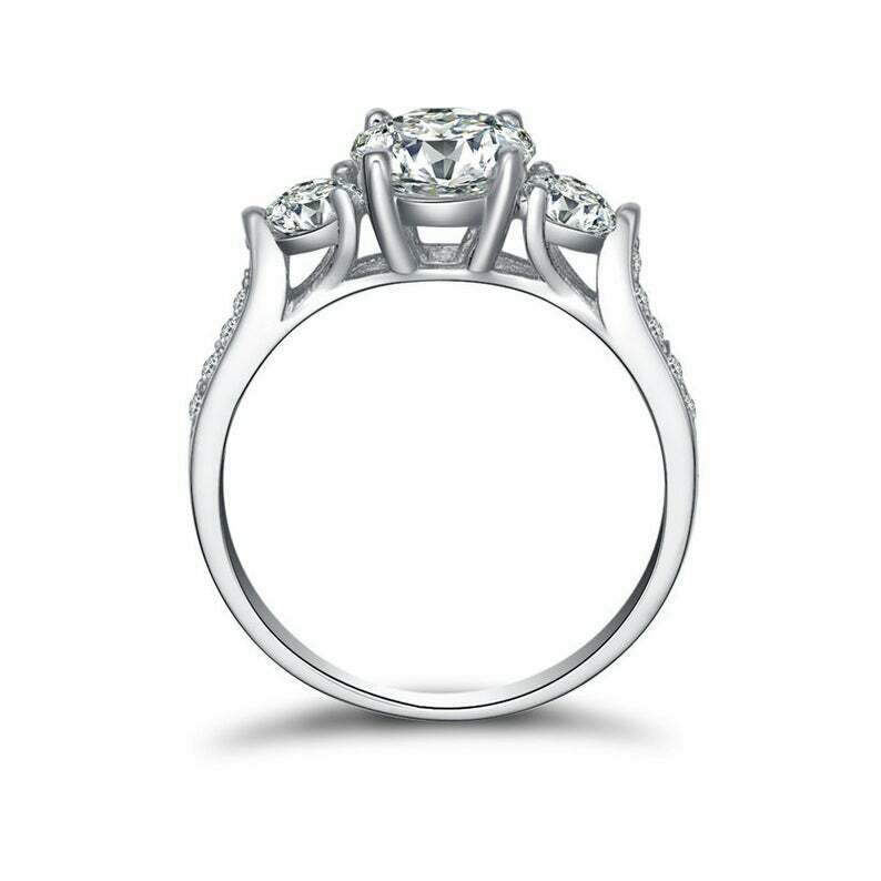 2ct Round Cut VVS1D Diamond Accent Trilogy Engagement Ring 14k White Gold Finish