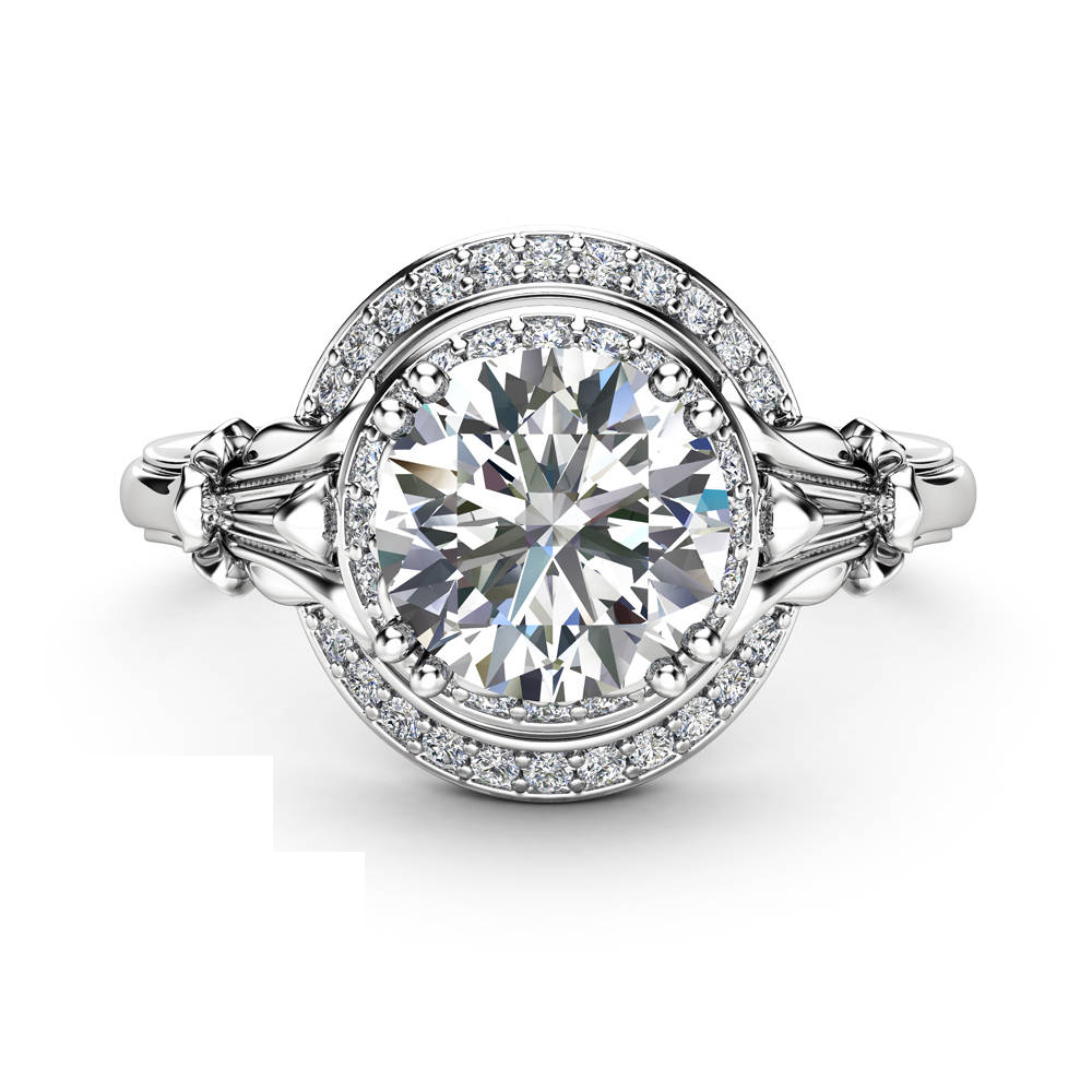2ct Round Cut VVS1D Diamond Engagement Ring 18k White Gold Finish Halo Art Deco