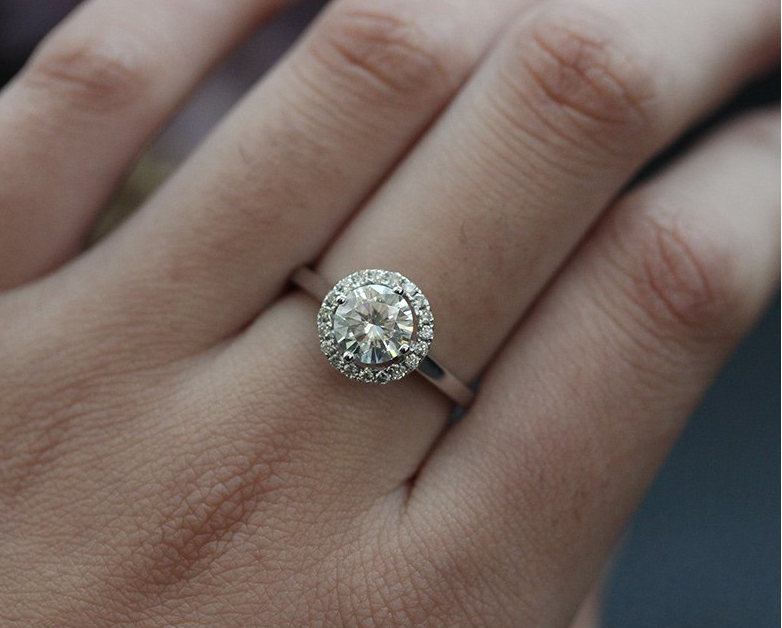 2ct Round Cut VVS1D Diamond Engagement Ring 18k White Gold Finish Halo Solitaire