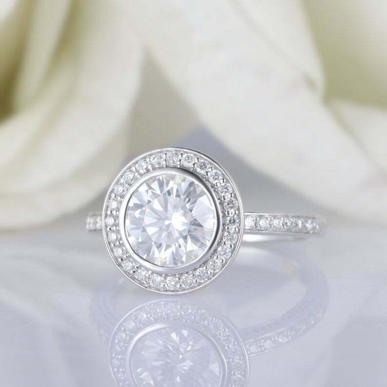 2ct Round Cut VVS1D Diamond Engagement Ring Bezel Set Halo 14k White Gold Finish