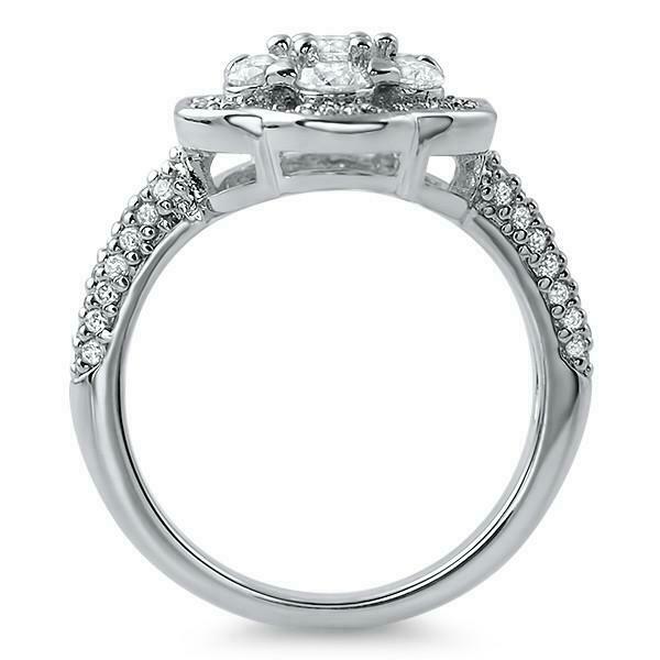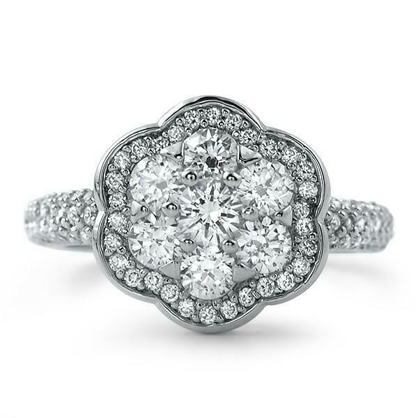 2ct Round Cut VVS1D Diamond Engagement Ring Flower Design 14k White Gold Finish