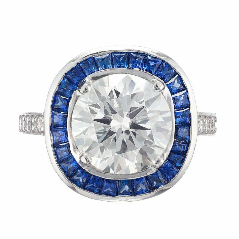 2ct Round Cut VVS1D Diamond Engagement Ring Halo Art Deco 14k White Gold Finish