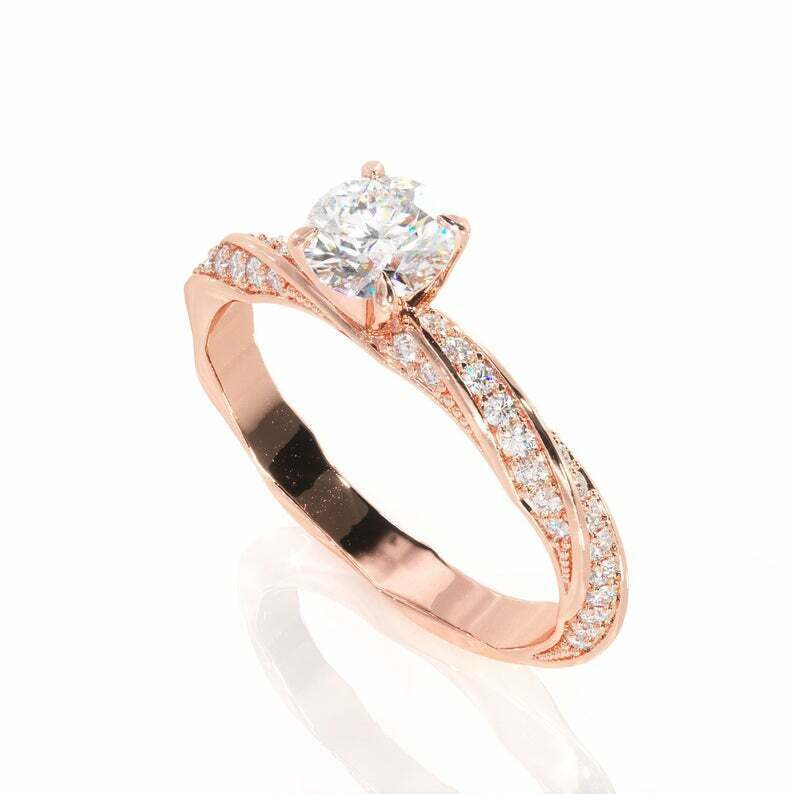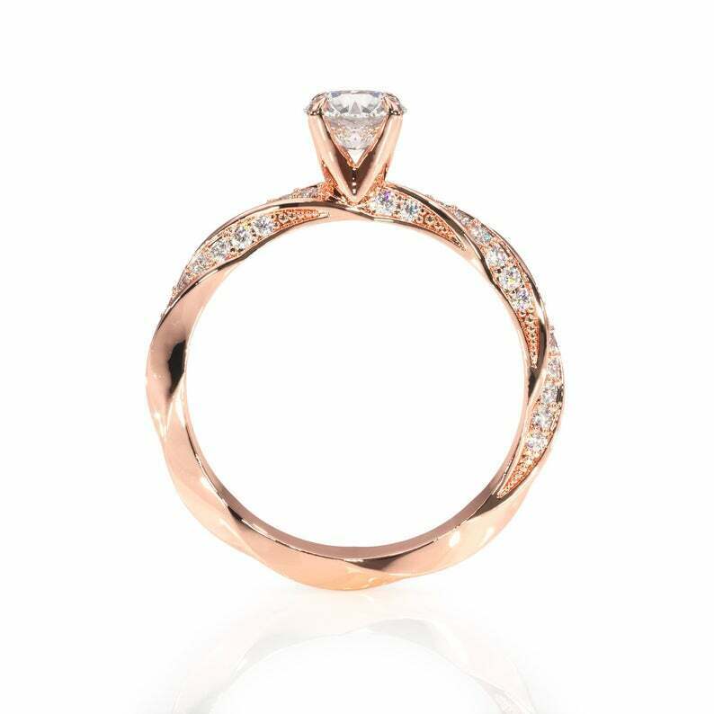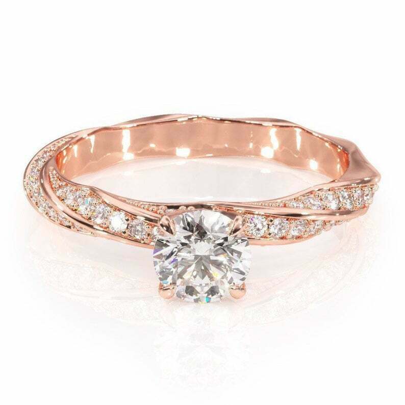 2ct Round Cut VVS1D Diamond Engagement Ring Twisted Shank 14k Rose Gold Finish