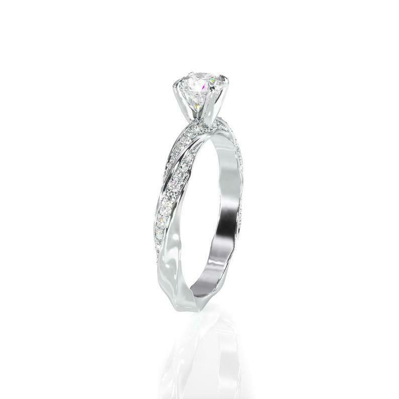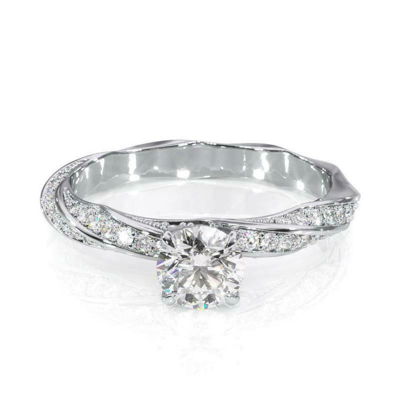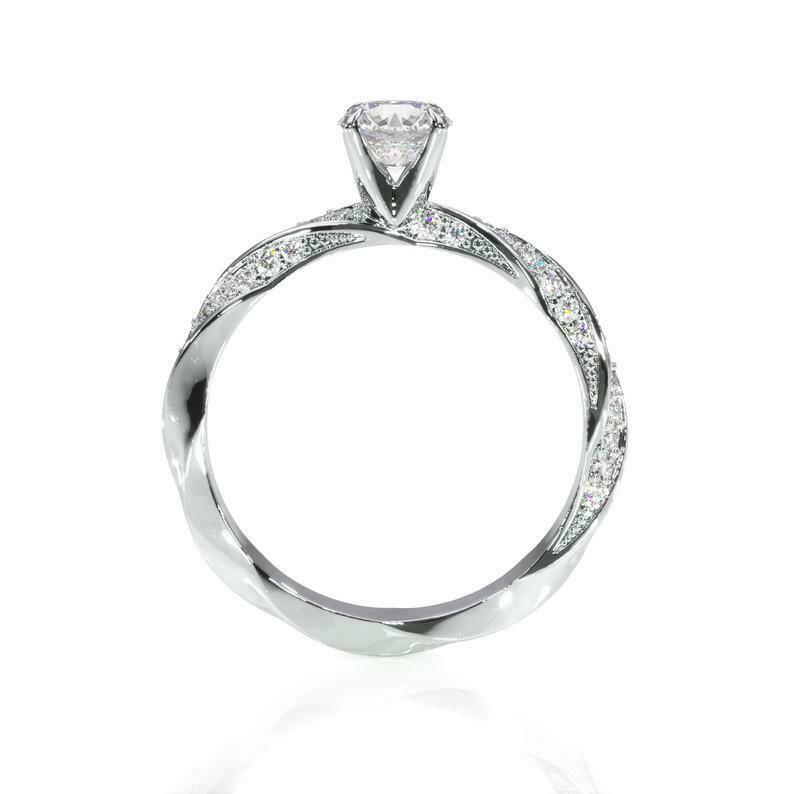 2ct Round Cut VVS1D Diamond Engagement Ring Twisted Shank 14k White Gold Finish