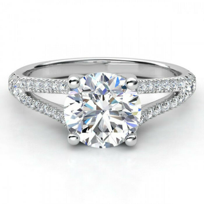 2ct Round Cut VVS1D Diamond Split Shank Engagement Ring 14k White Gold Finish