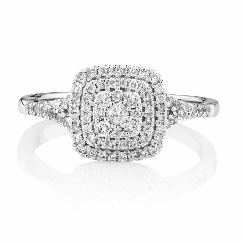 2ct Round Cut VVS1D Diamond Triple Halo Engagement Ring 14k White Gold Finish