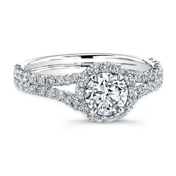 2ct Round Diamond Accent Halo Split Shank Engagement Ring 14k White Gold Finish
