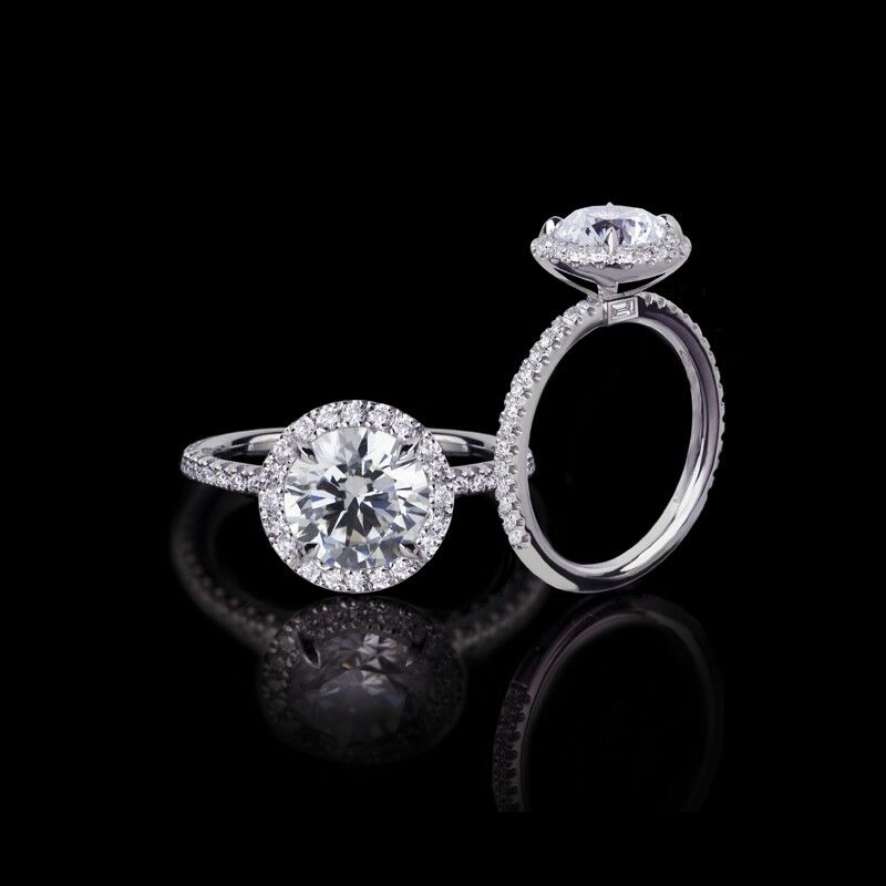 2ct Round Diamond Accent Solitaire Halo Engagement Ring 18k White Gold Finish