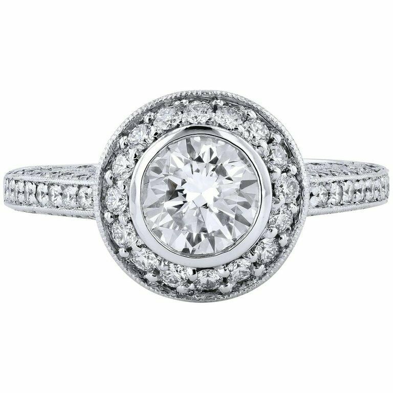 2ct Round Cut Diamond Engagement Ring Halo Solitaire with Accent 18k White Gold Over