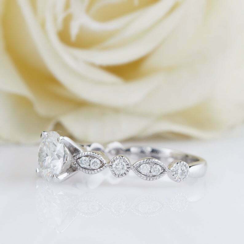2ct Round Cut Diamond Engagement Ring Milgrain Accent Solitaire 14k White Gold Over