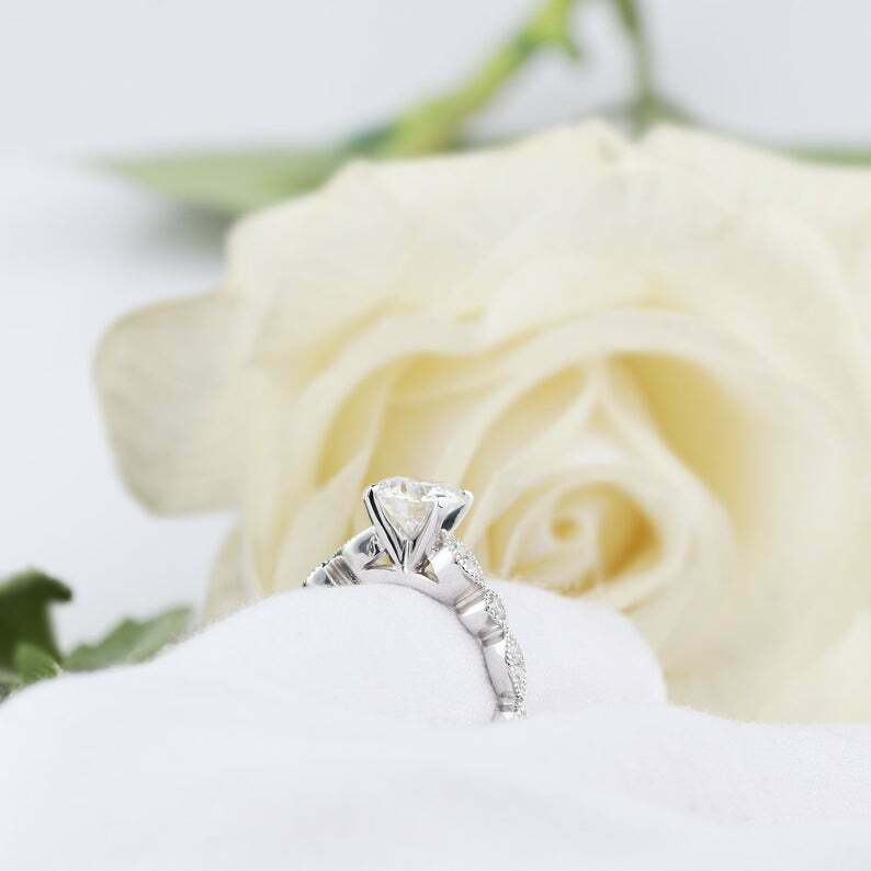 2ct Round Diamond Engagement Ring Milgrain Accent Solitaire 14k White Gold Over
