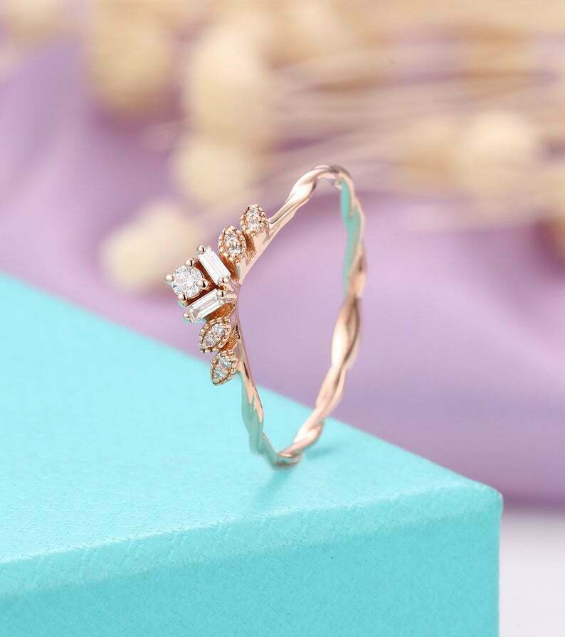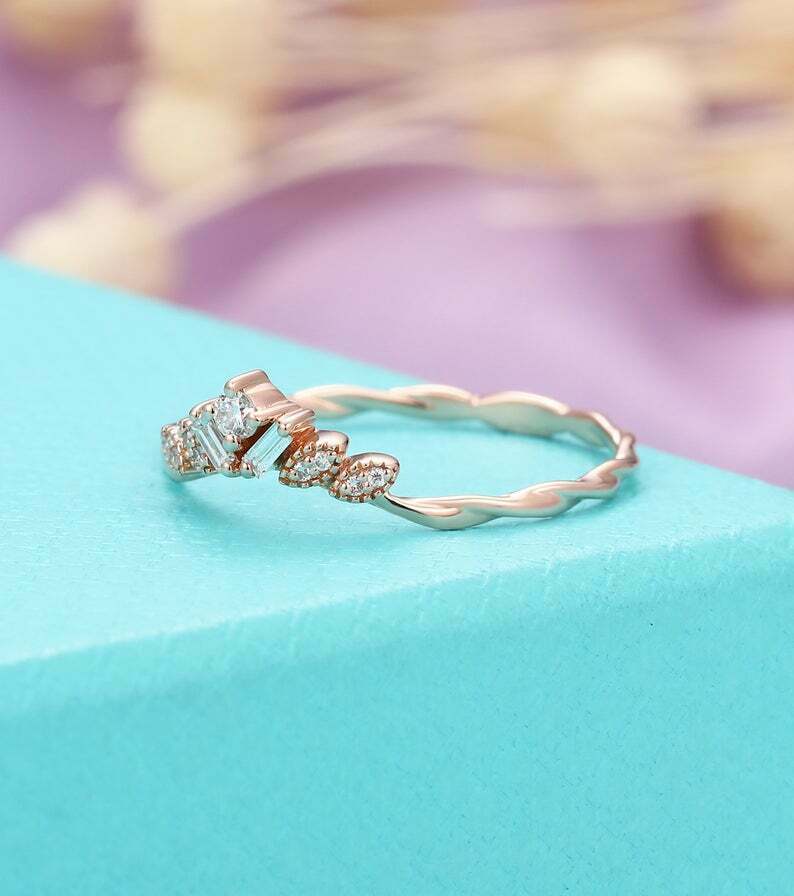 2ct Round Cut Diamond Engagement Ring Twisted Milgrain Trio Set 14k Rose Gold Finish