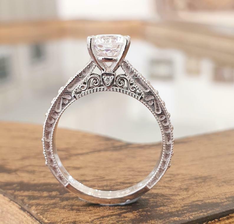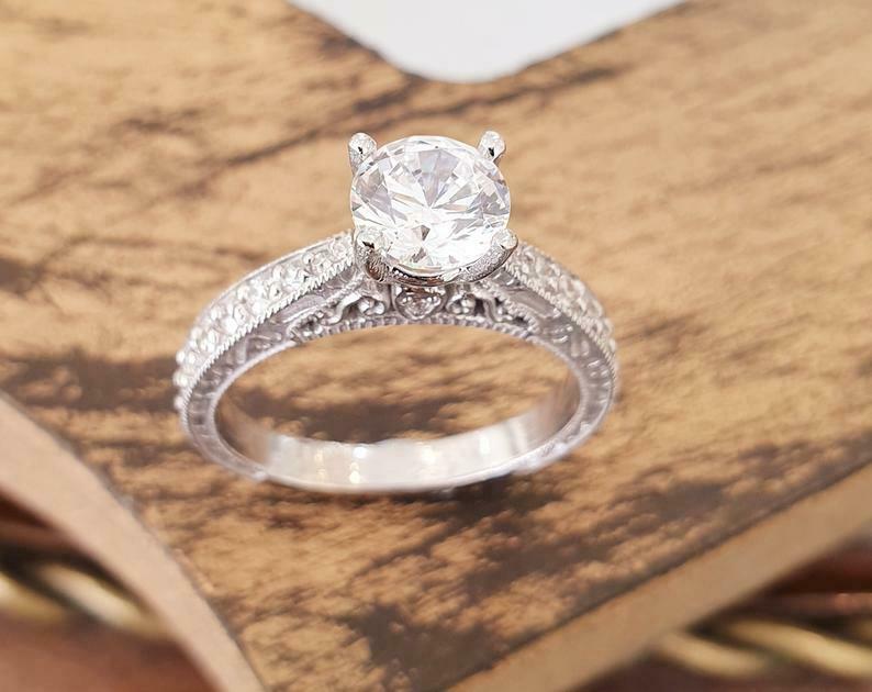 2ct Round Cut Diamond Engagement Ring Vintage Inspired Filigree 14k White Gold Over