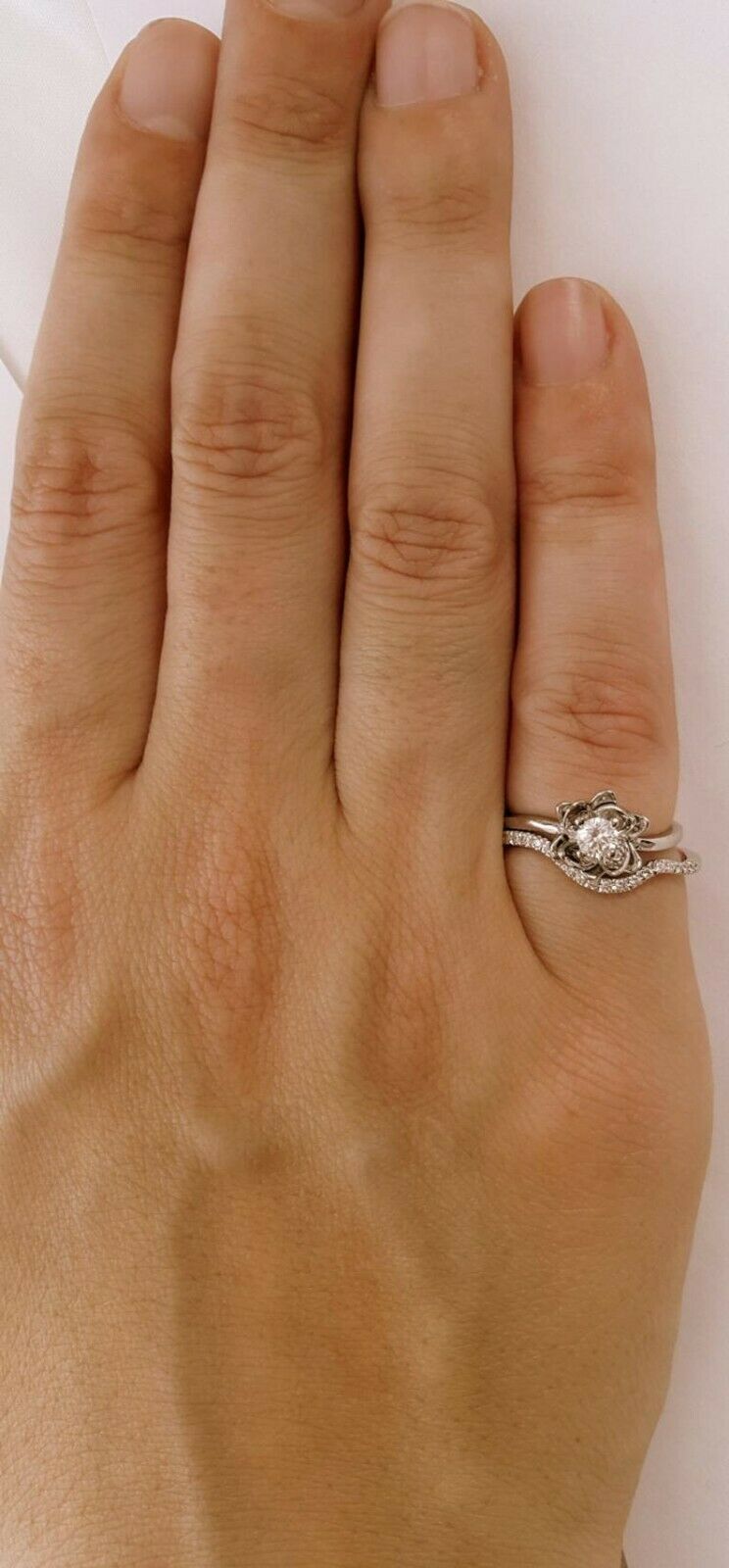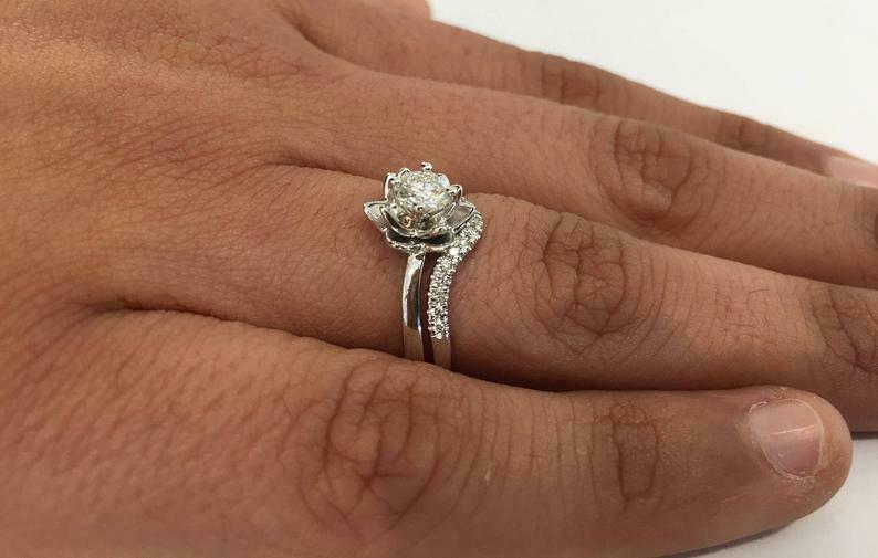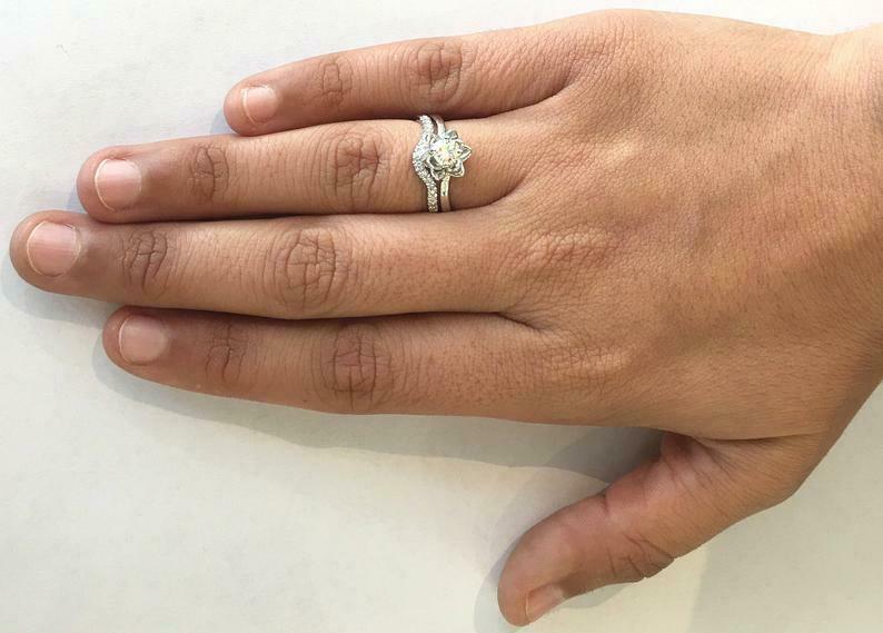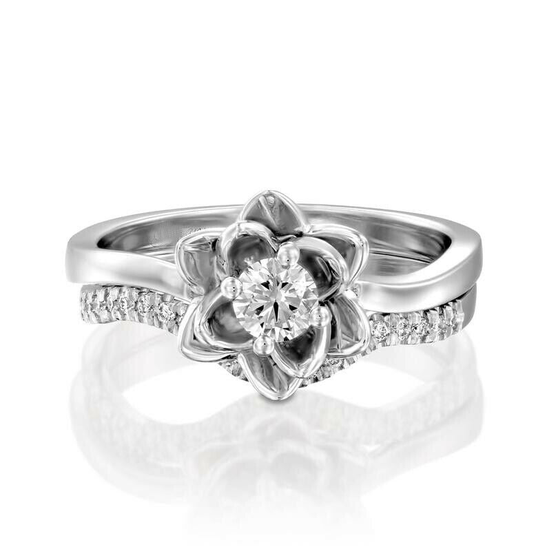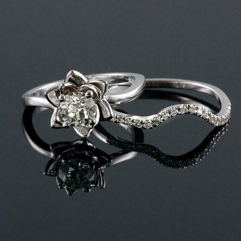 2ct Round Diamond Flower Bridal Wedding Set Engagement Ring 14k White Gold Over