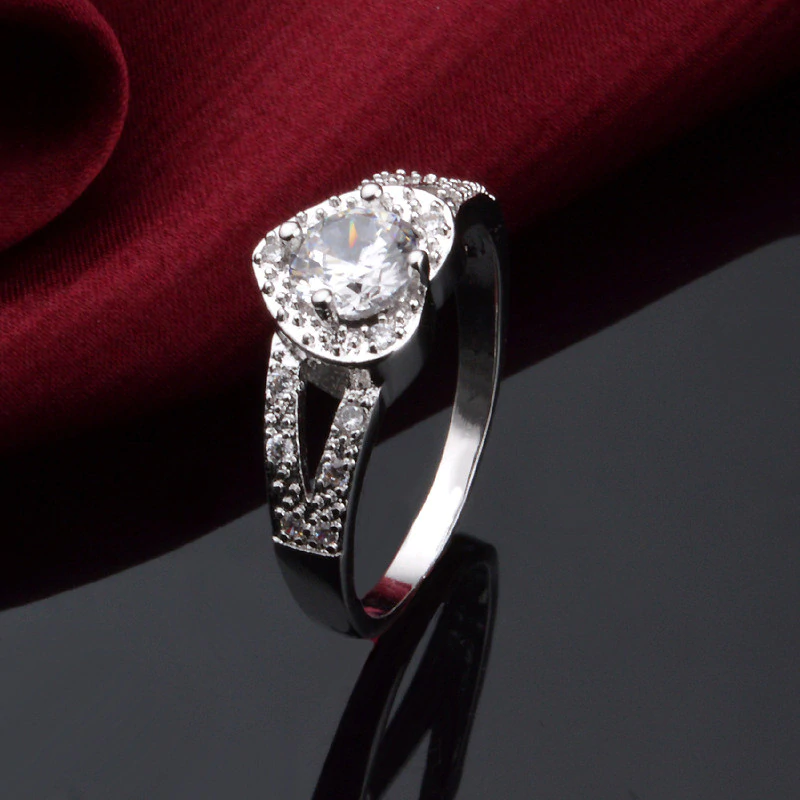 2Ct Round Diamond Heart Shaped Split Band Engagement Ring 14K White Gold Finish