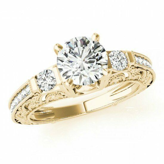 2ct Round Diamond Milgrain Trilogy Vintage Engagement Ring 14k Yellow Gold Over