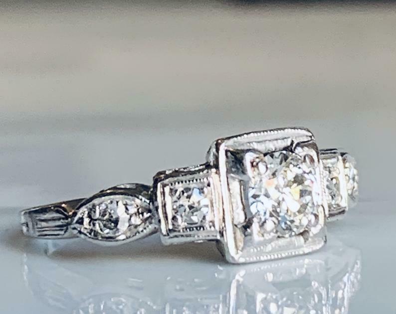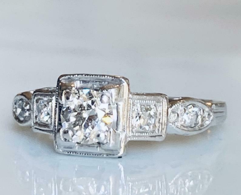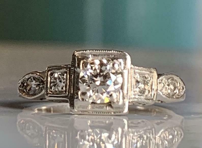2ct Round Diamond Milgrain Vintage Inspired Engagement Ring 14k White Gold Finish