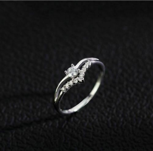 2Ct Round Diamond Petite Curve Minimalist Engagement Ring 14K White Gold Finish