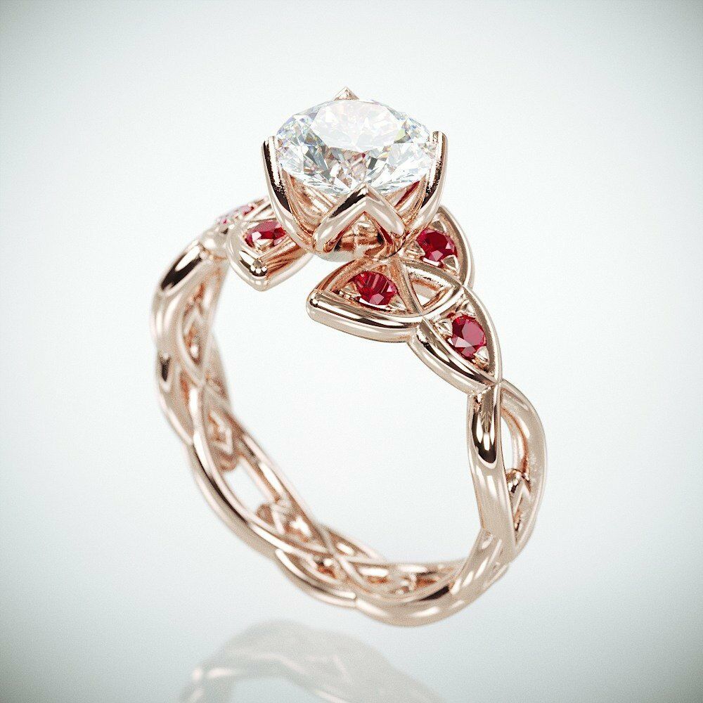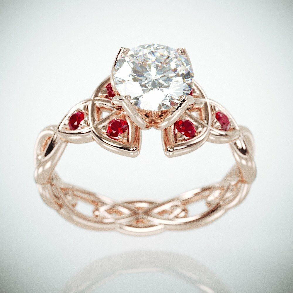 2Ct Round Diamond Ruby Trinity Knot Celtic Engagement Ring 14K Rose Gold Finish