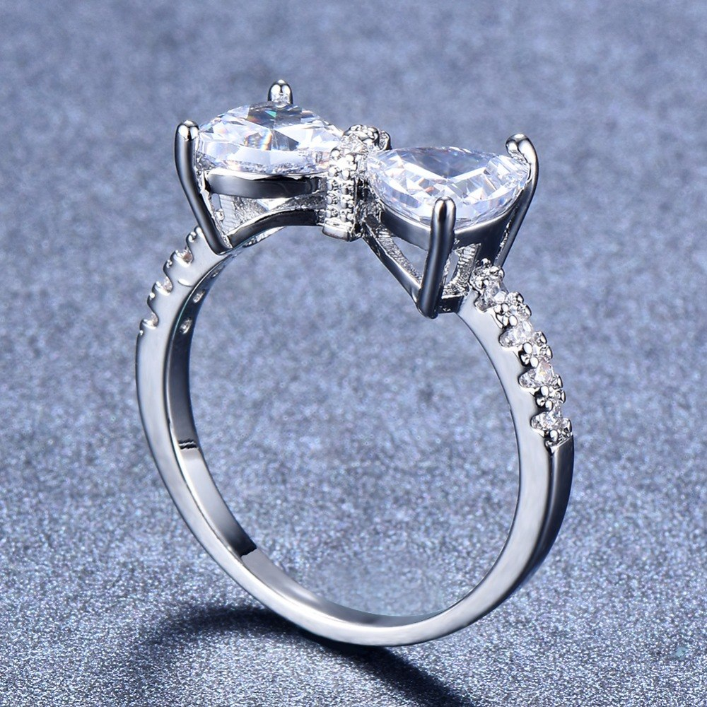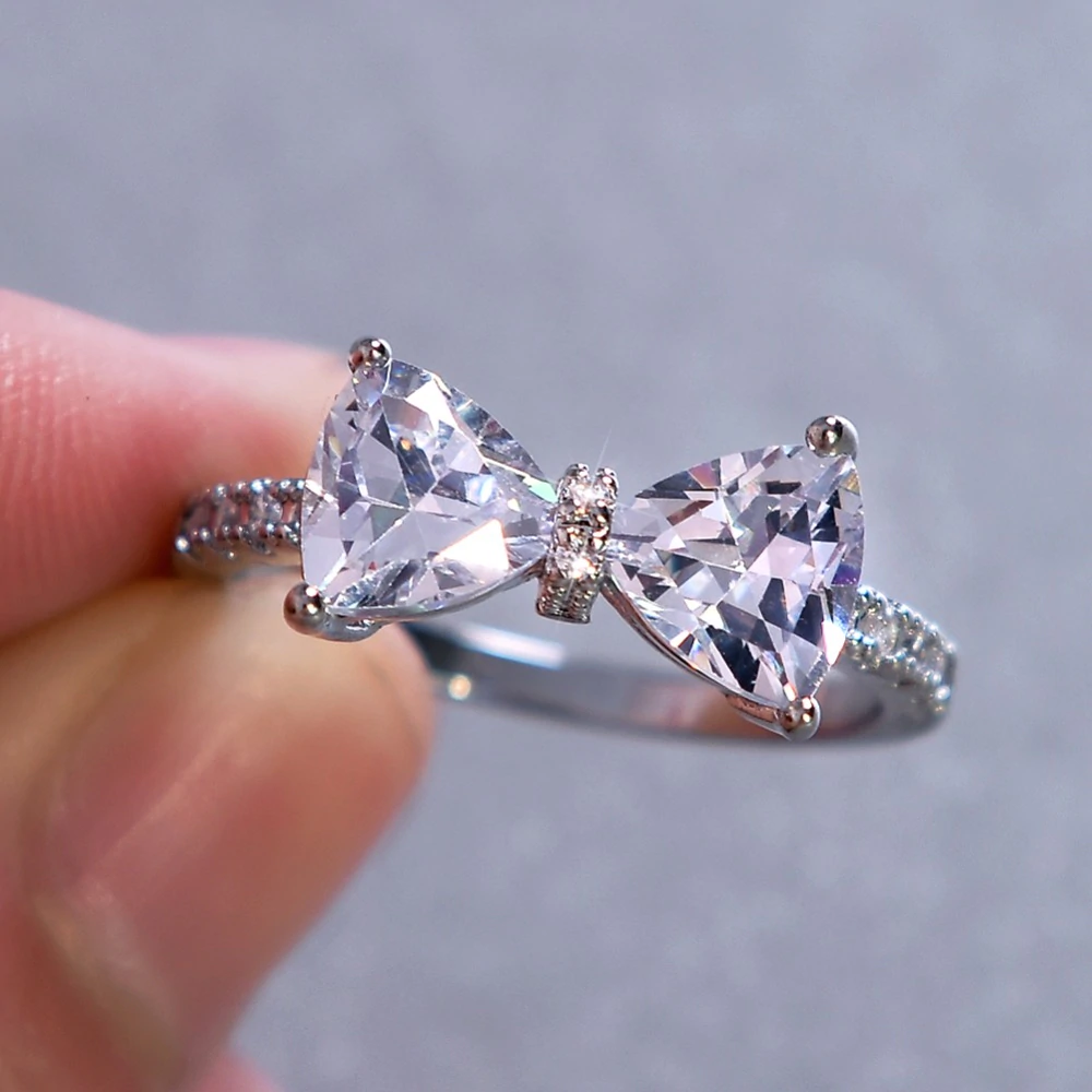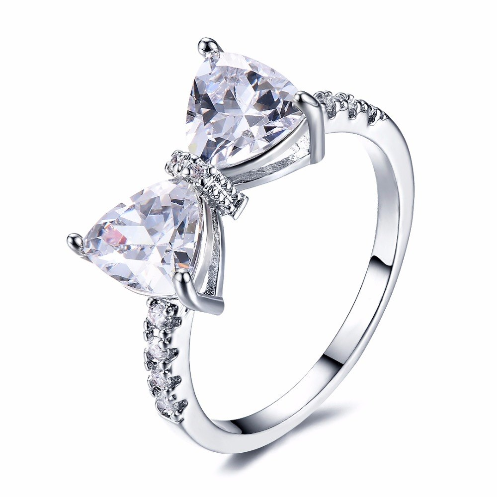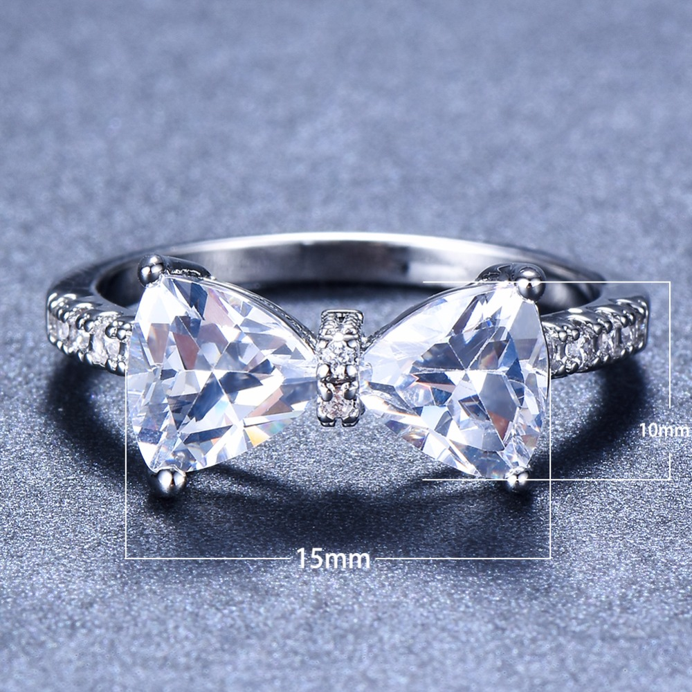 2ct Trillion Cut Diamond Engagement Ring 14k White Gold Finish Bow Knot Design
