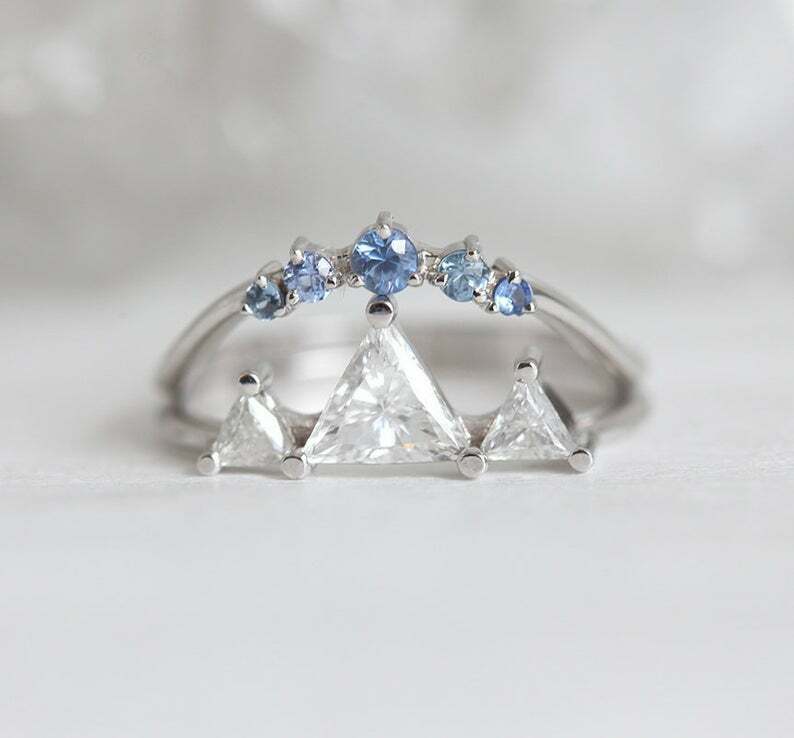 2ct Trillion Cut Diamond Engagement Ring 14k White Gold Over Triangle Split Shank