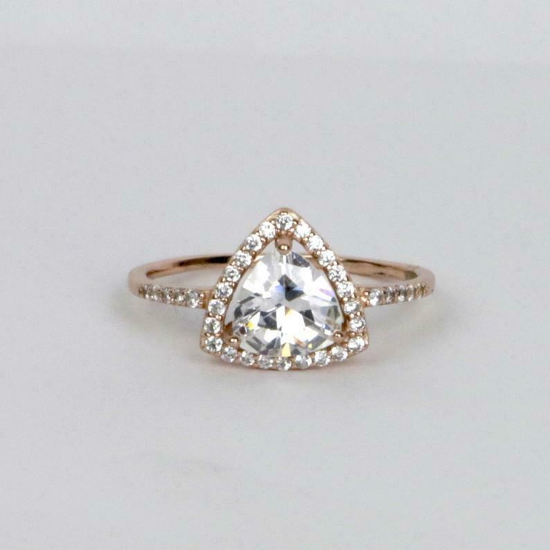 2ct Trillion Cut VVS1D Diamond Accents Halo Engagement Ring 14k Rose Gold Finish