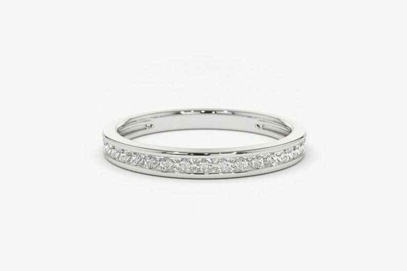 2ct Wedding Band Princess Cut Diamond Channel Set Eternity 14k White Gold Finish