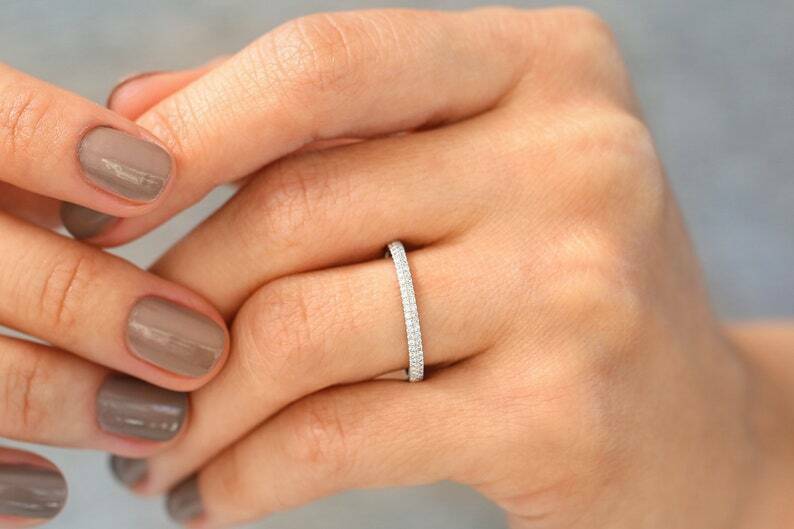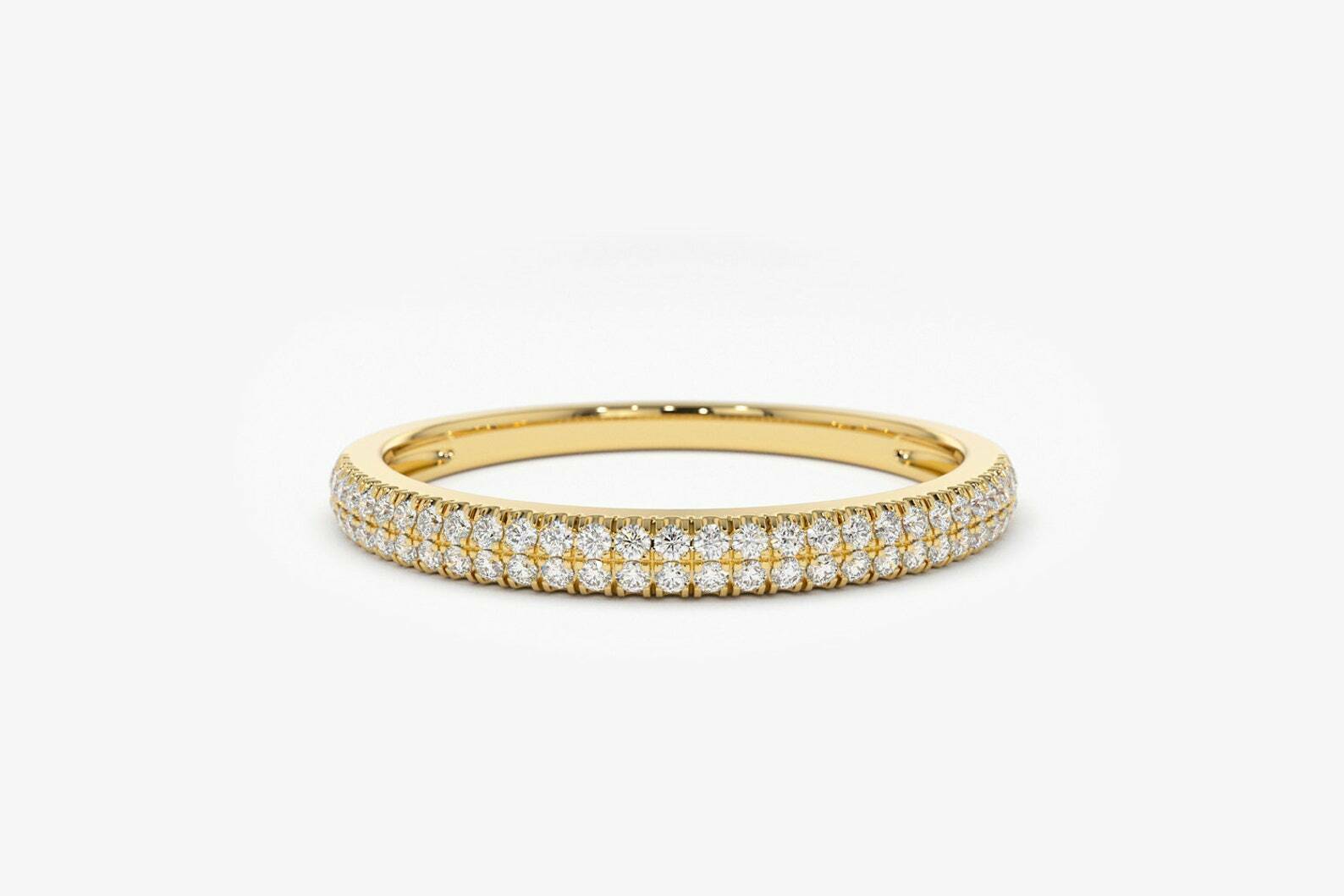 2ct Wedding Band Round Cut Diamond Dual Row Half Eternity 14k Yellow Gold Finish