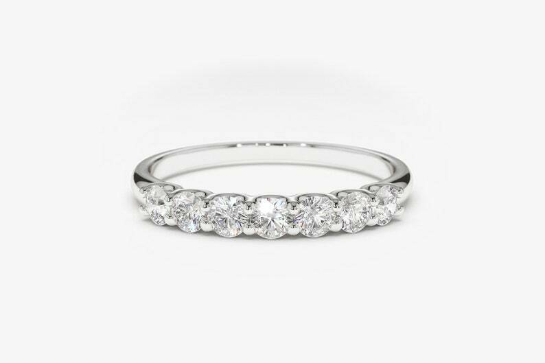 2ct Wedding Band Round Cut Diamond Stackable Half Eternity 14k White Gold Finish
