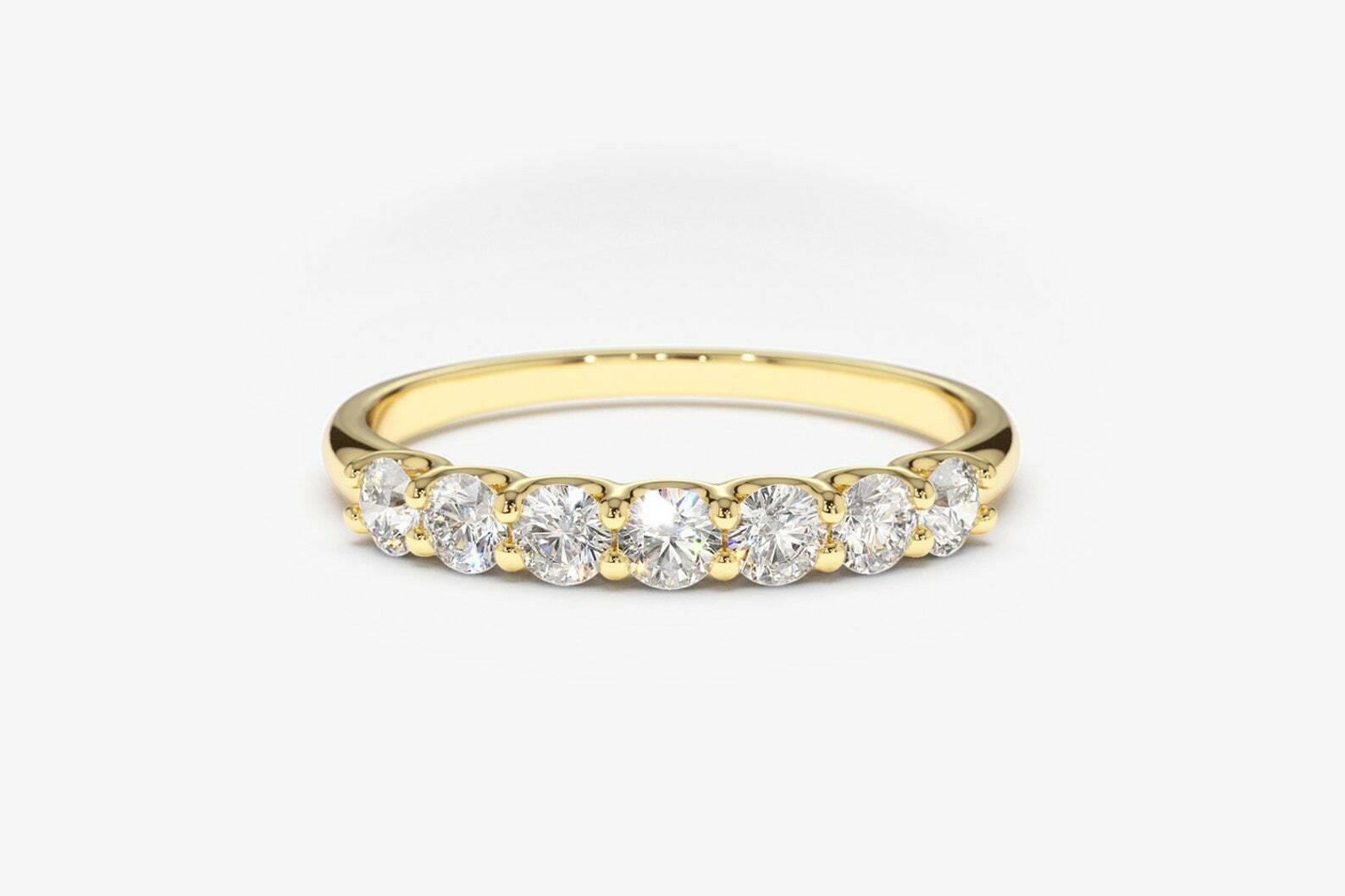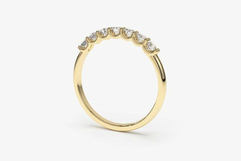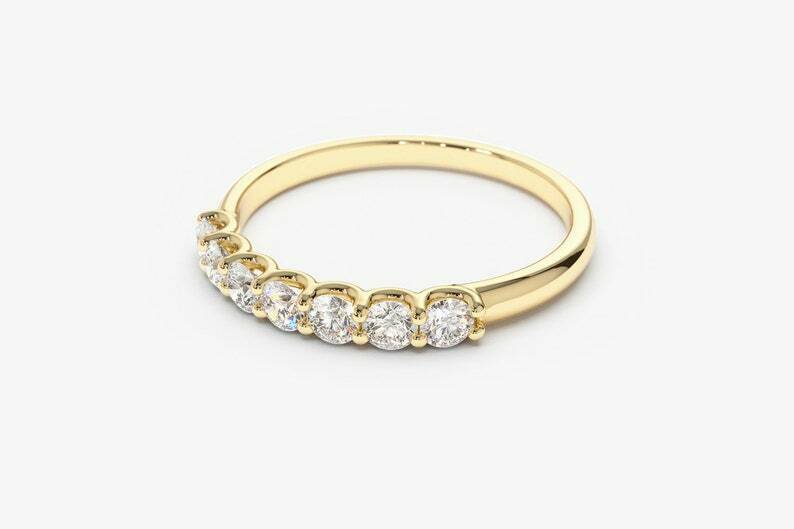 2ct Wedding Band Round Cut Diamond Stackable Half Eternity 14k YellowGold Finish