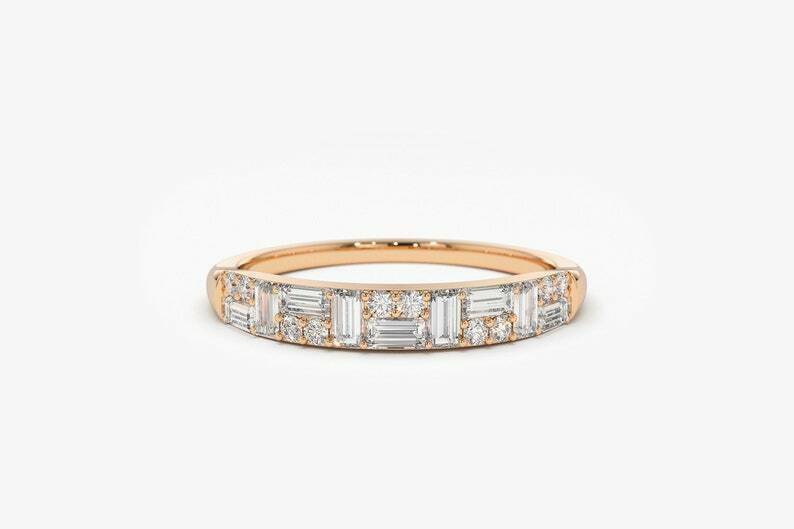 2ct Wedding Ring Band Baguette Cut Diamond Cluster Design 14k Rose Gold Finish