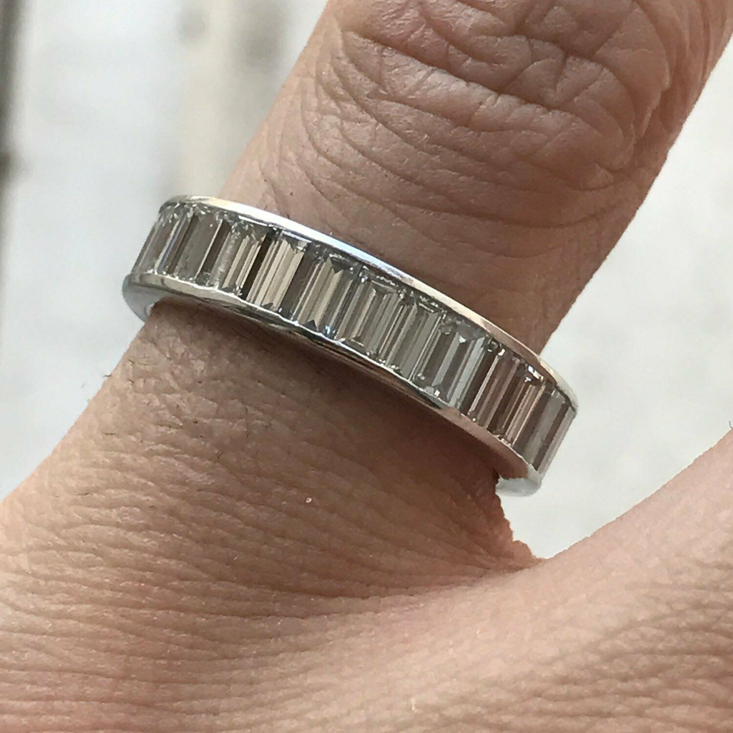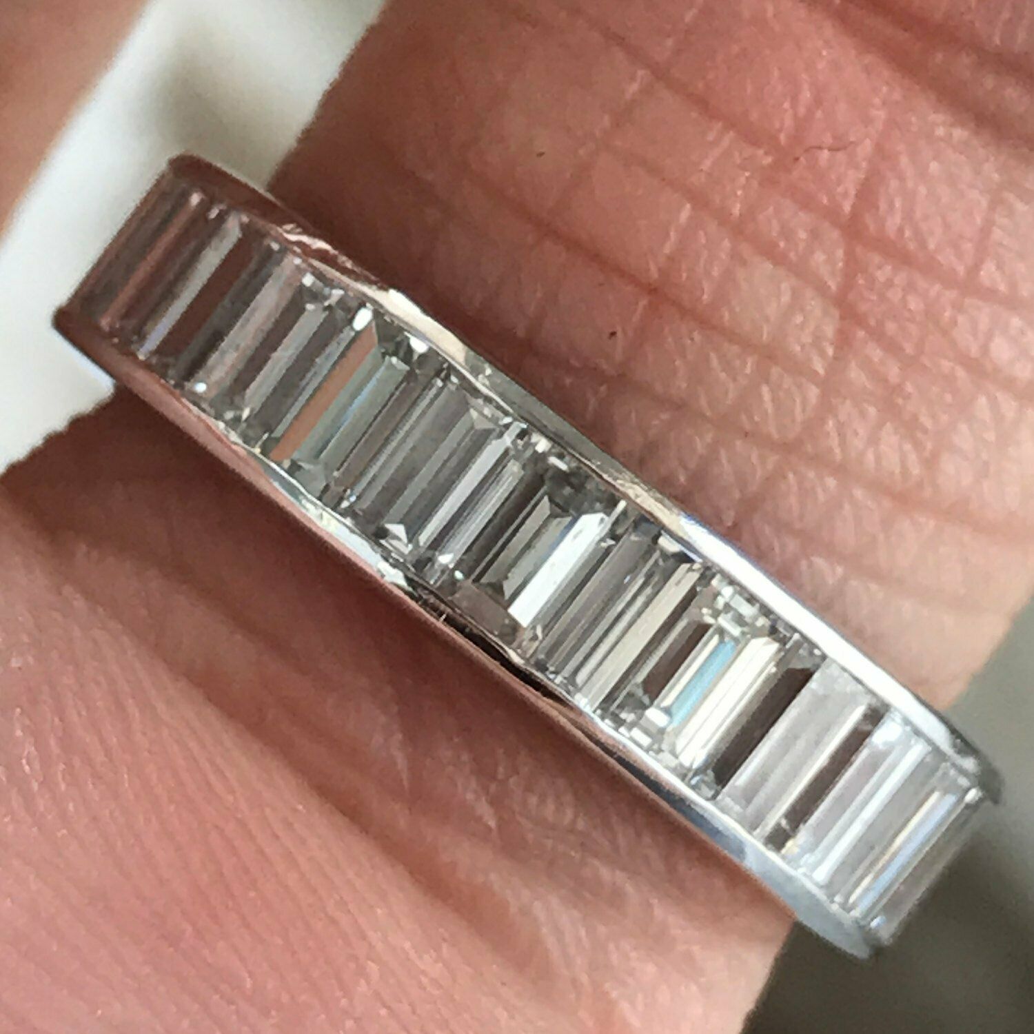 3.15ct Emerald Cut Diamond Wedding Ring Band Full Eternity 14k White Gold Finish