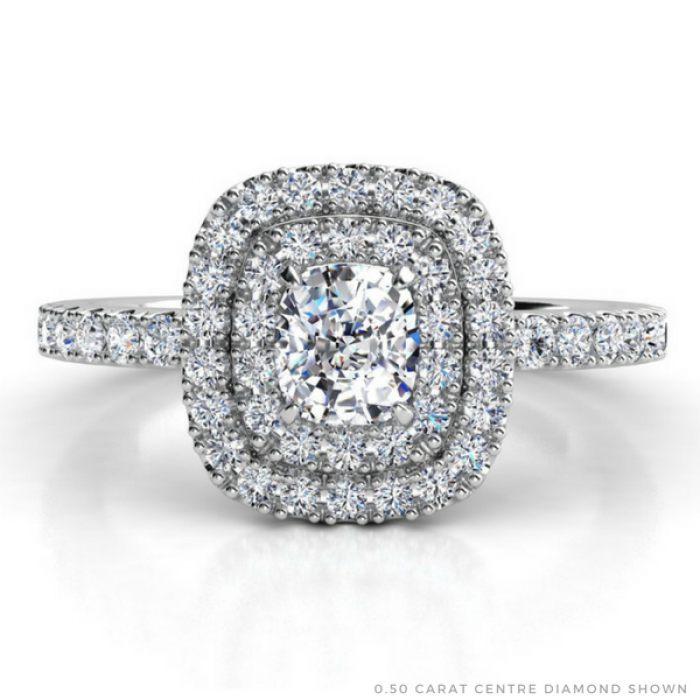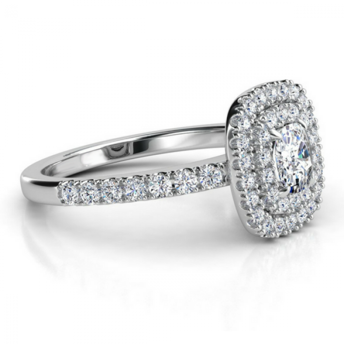 3.1ct Cushion Cut VVS1 Diamond Double Halo Engagement Ring 14k White Gold Finish