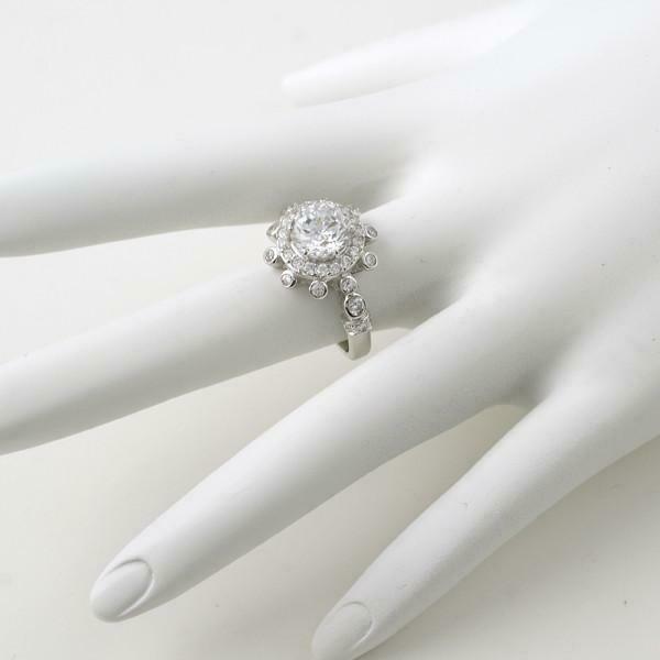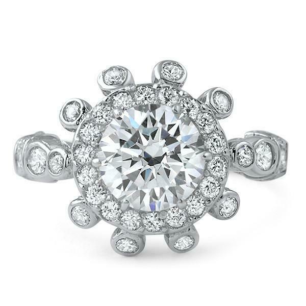 3.1ct Round Cut Diamond Engagement Ring Fancy Sunburst Halo 14k WhiteGold Finish