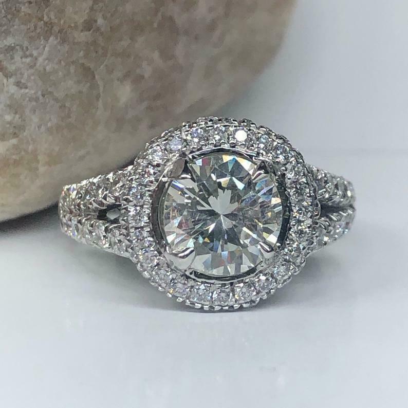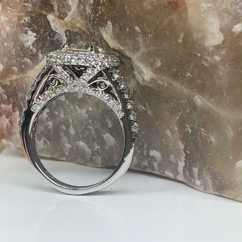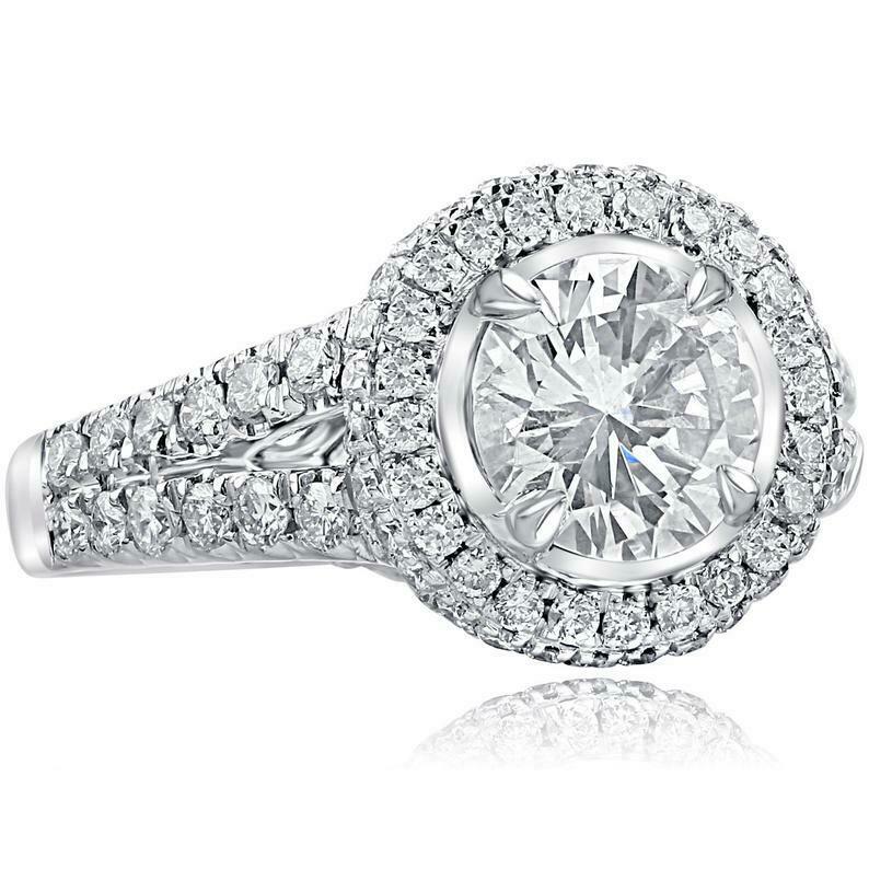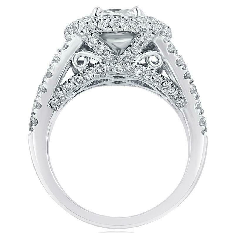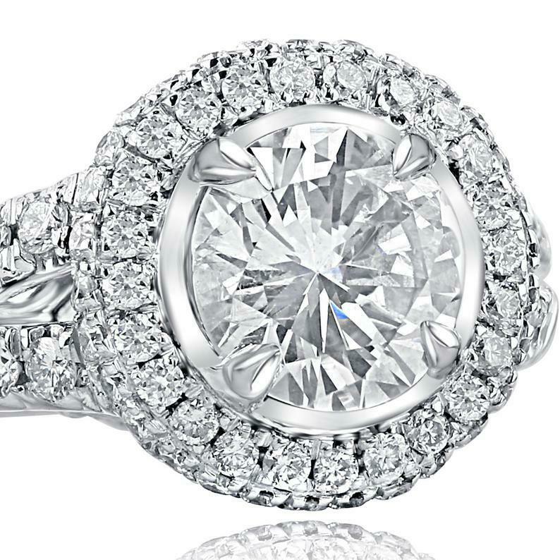 3.24ct Round Cut Diamond Engagement Ring Dual Halo Split Shank 14k White Gold Finish