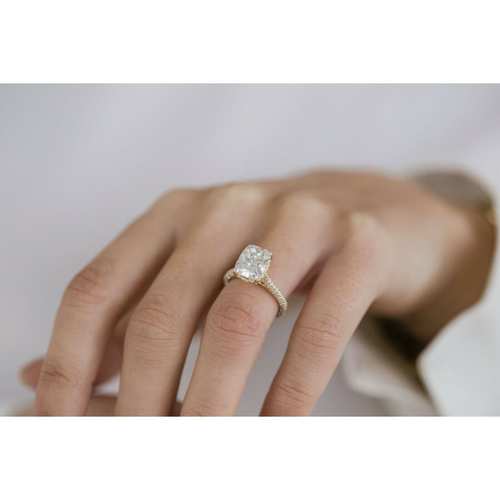 3.2ct Cushion Cut Diamond Engagement Ring Hidden Halo Solitaire 14k Yellow Gold Over