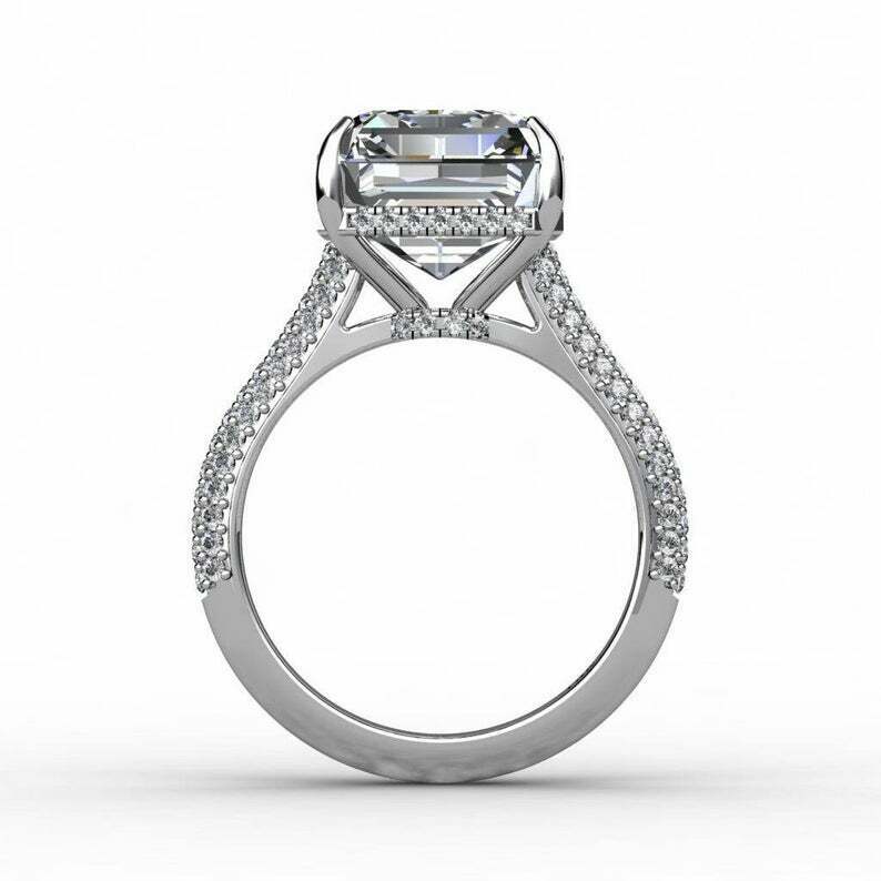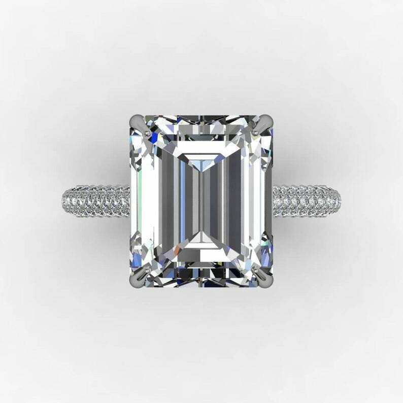 3.2ct Emerald Cut Diamond Accents Solitaire Proposal Ring 14k White Gold Finish