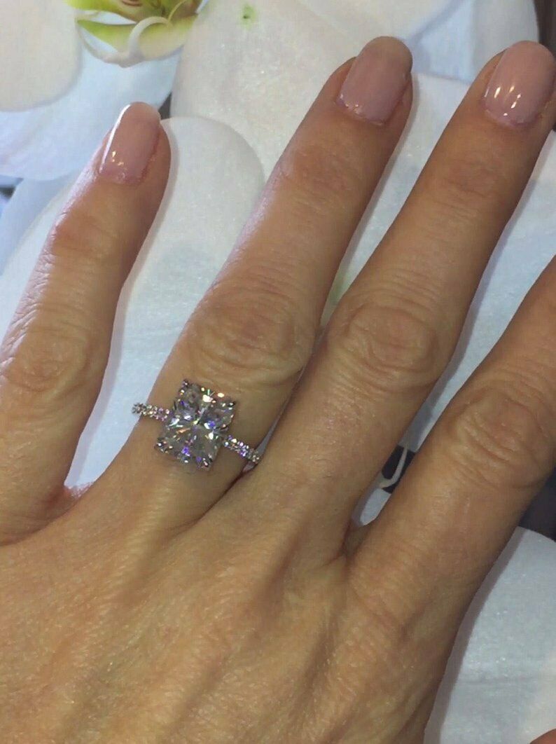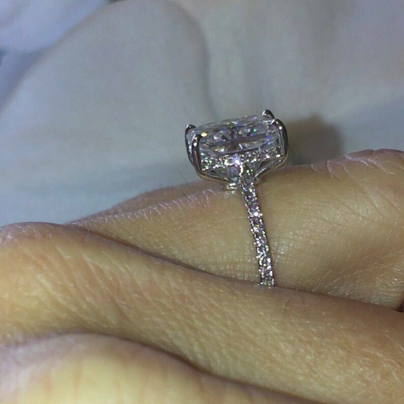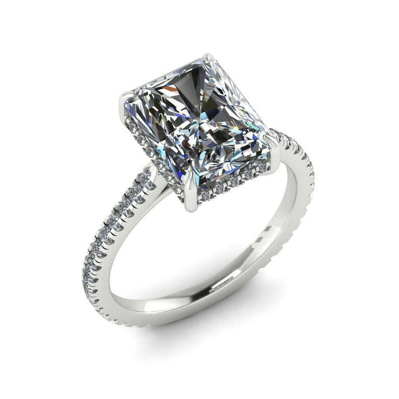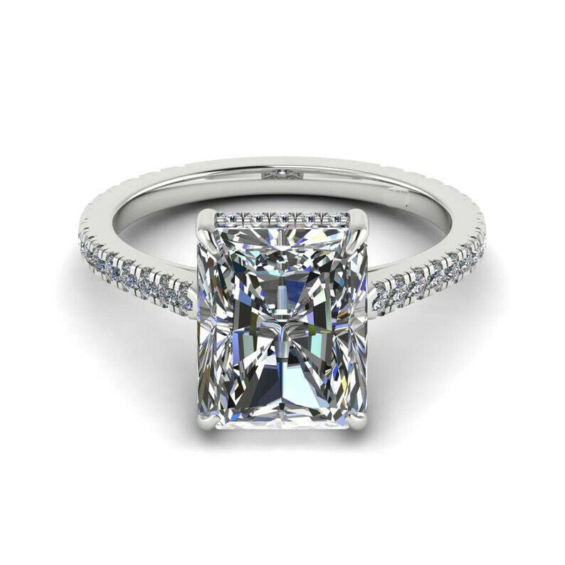 3.2ct Radiant Diamond Engagement Ring Round Accents Solitaire 14k White Gold Over