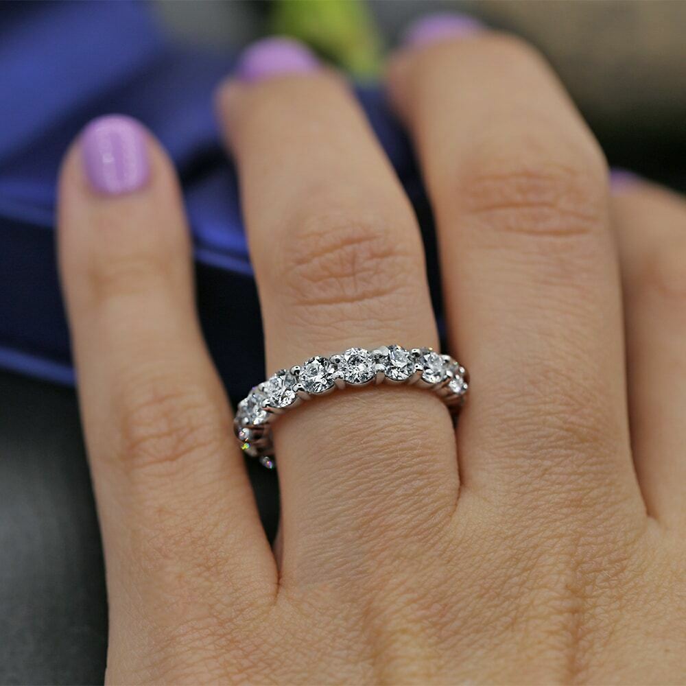 3.2ct Round Cut Diamond Wedding Ring Band 14k White Gold Finish Full Eternity