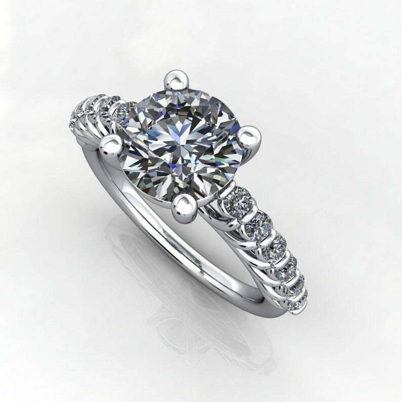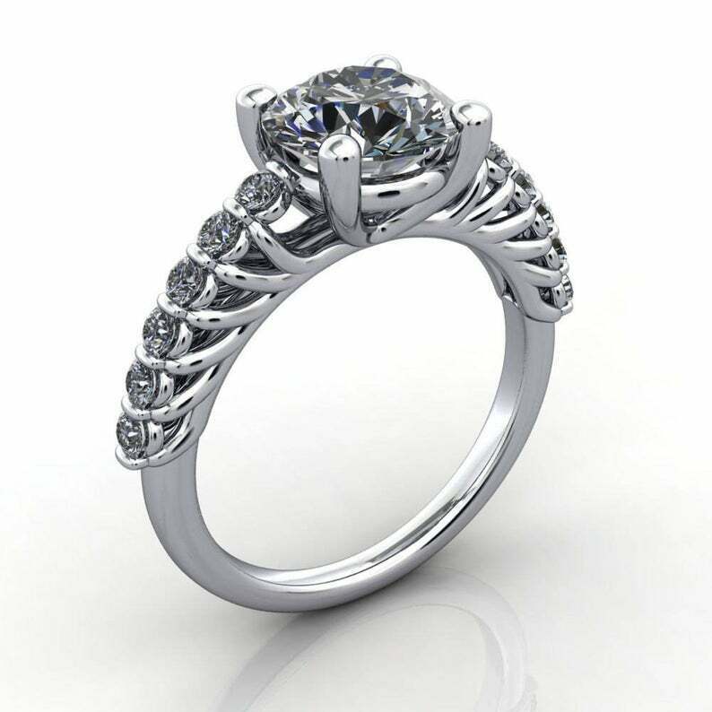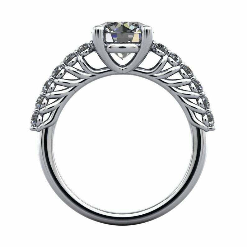 3.2ct Round Diamond Engagement Ring Solitaire Filigree Floral 14k WhiteGold Over