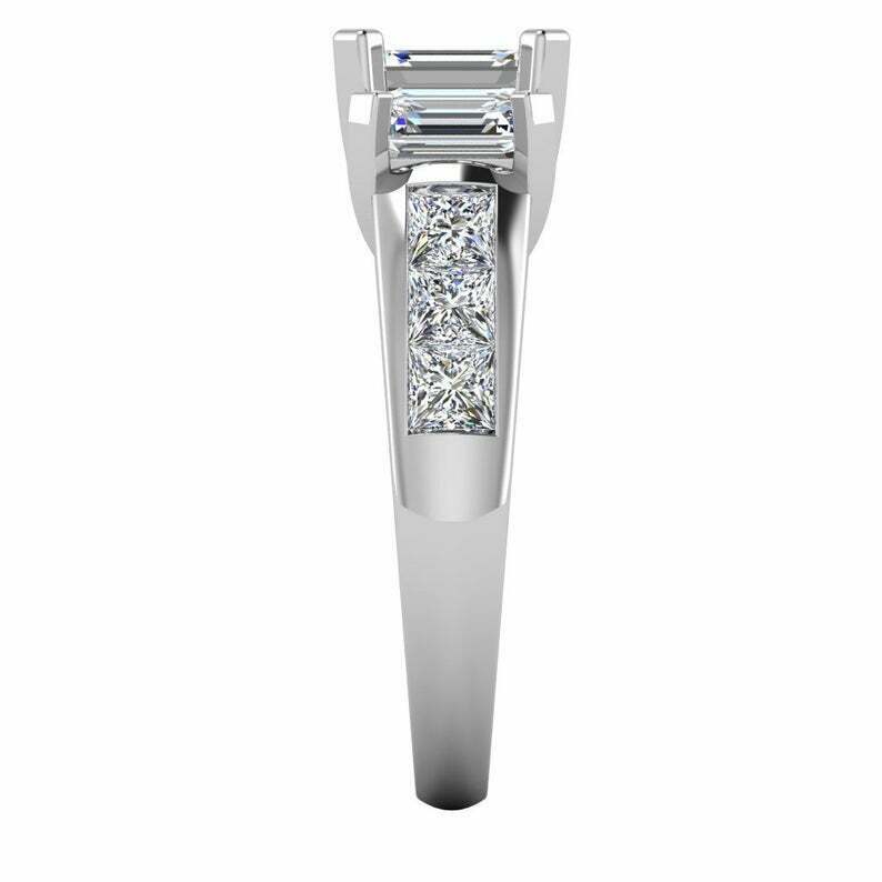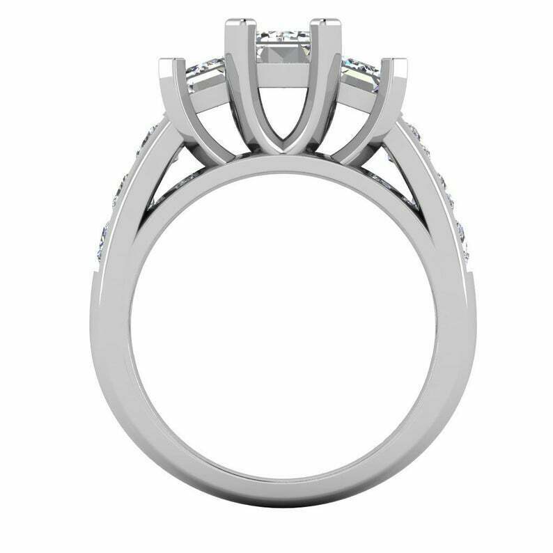 3.3ct Emerald Cut Diamond Trilogy Ring 14k White Gold Over with Princess Accents