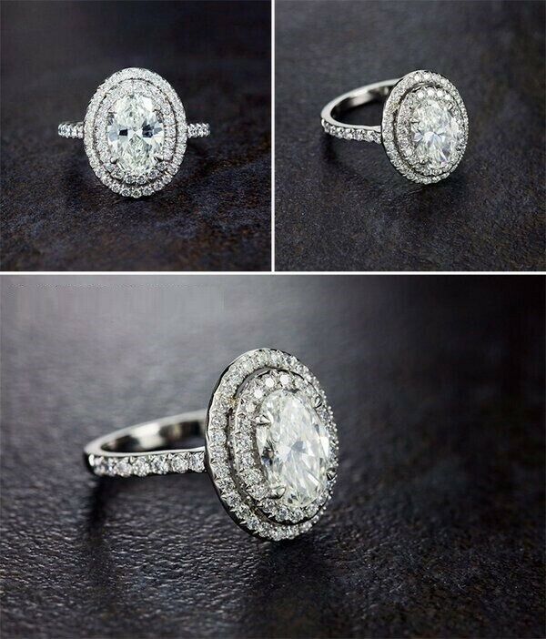 3.3Ct Oval Cut VVS1D Diamond Double Halo Engagement Ring 14K White Gold Finish