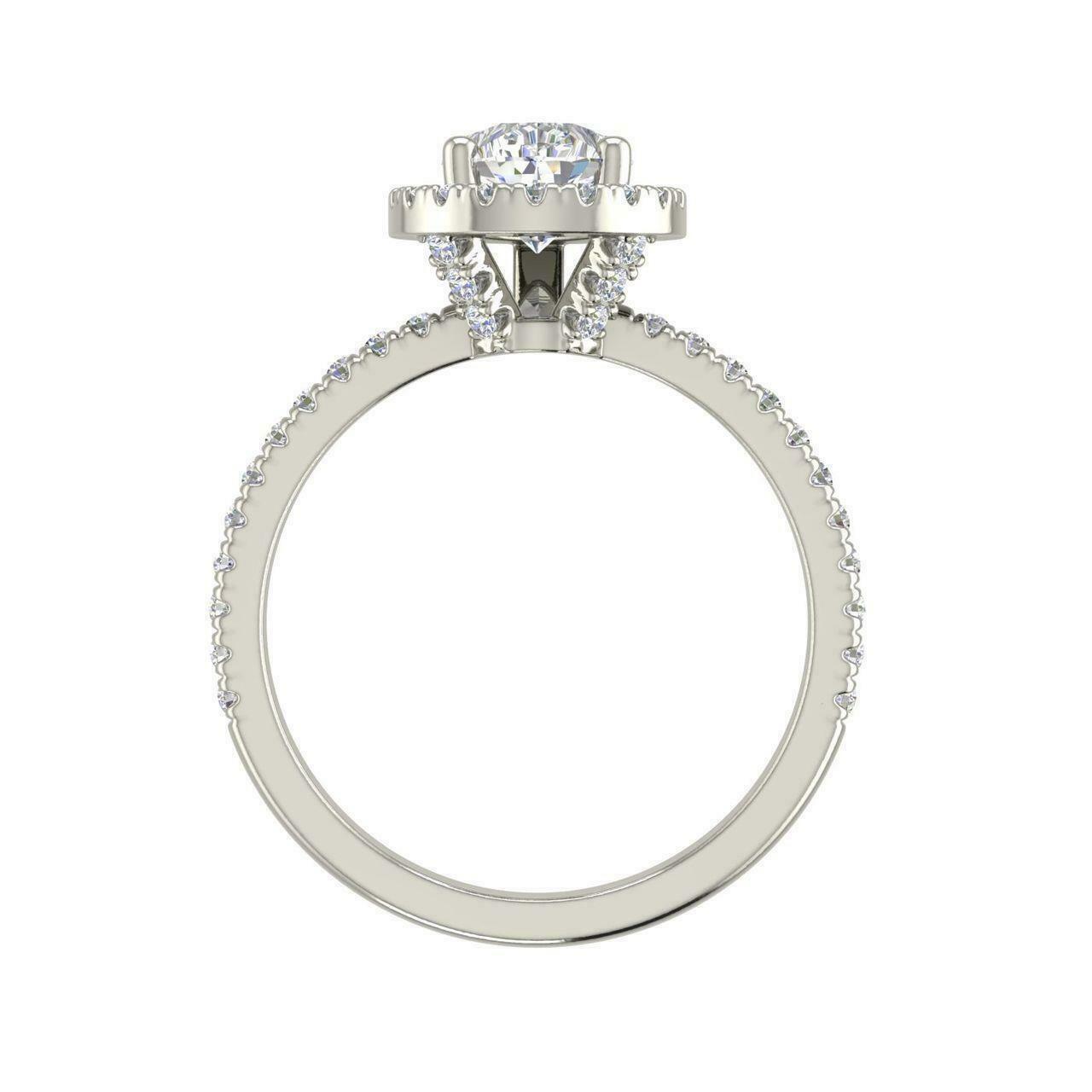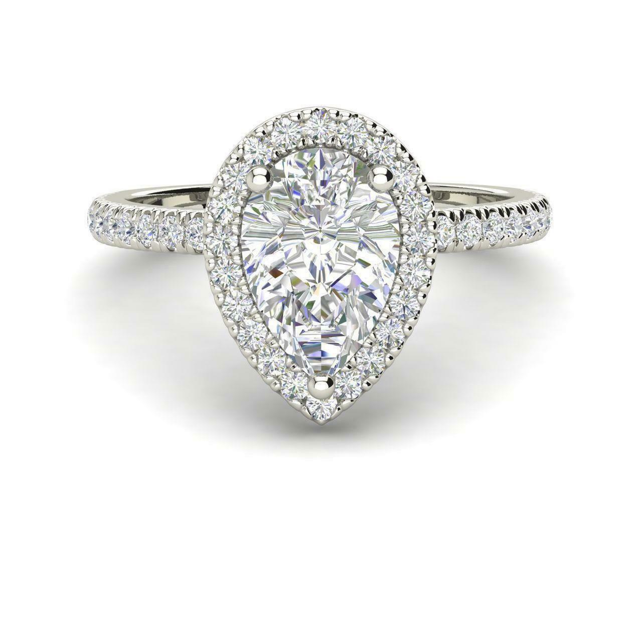3.3Ct Pear Cut Diamond Halo Engagement Ring 14K White Gold Finish Round Accents