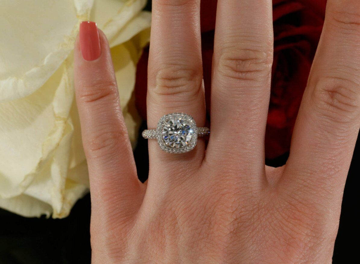 3.3ct Round Cut Diamond Unique Halo High Engagement Ring 14k White Gold Finish