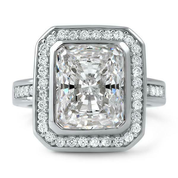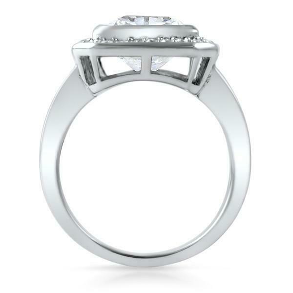3.45ct Radiant Cut Diamond Engagement Ring Halo Round Accent 14k White Gold Over
