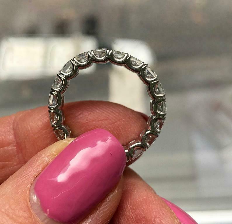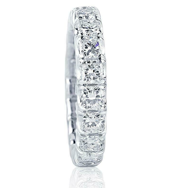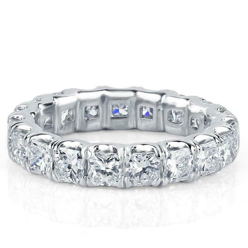 3.4ct Cushion Cut Diamond Wedding Ring Band Iced Full Eternity 14k White Gold Finish