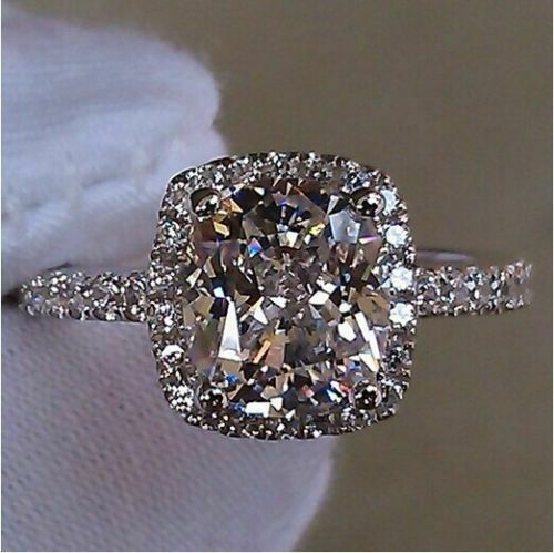 3.5Ct Cushion Cut Diamond Halo Engagement Ring 14K White Gold Over Round Accents