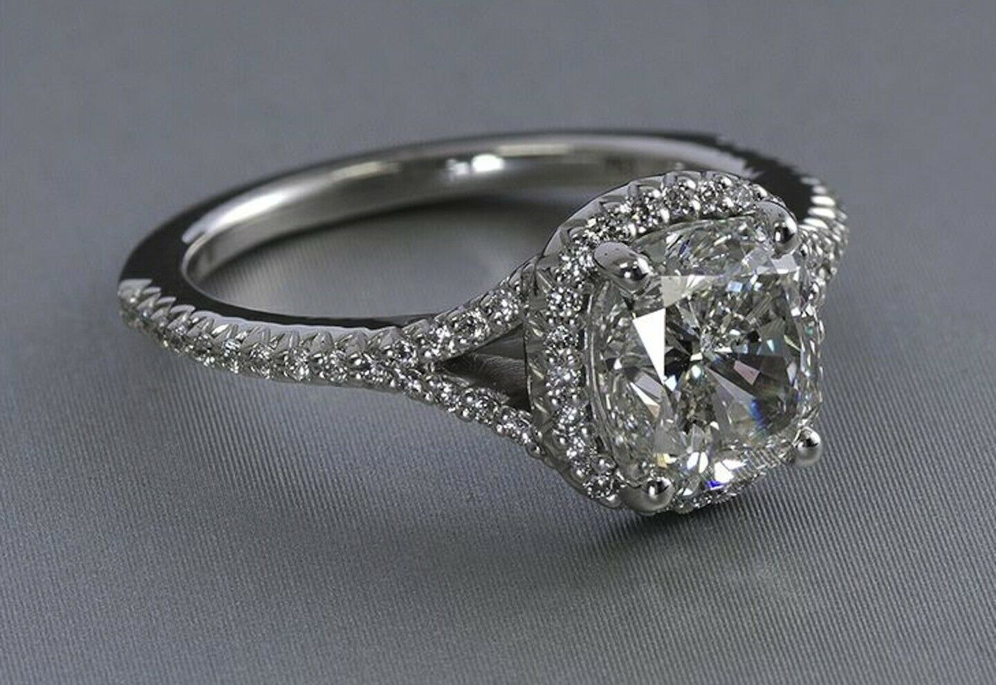 3.5Ct Cushion Cut Diamond Split Band Halo Engagement Ring 14K White Gold Finish